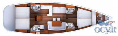 Comodo 53' dei cantieri Jeanneau. Esistono versioni 3-4 e 5 cabine, con 2, 3 o 4 wc. La presente scheda non ha finalità contrattuali e rappresenta la tipologia di imbarcazione proposta, non la barca specifica e gli accessori del preventivo.