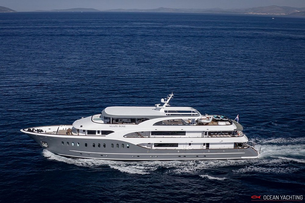 Agape Rose è un minicruiser croato di lusso che naviga in acque croate. Può accogliere fino a 24 ospiti in 12 cabine (due sul ponte superiore (1 master e una doppia), 1 doppie e 7 twin trasformabili in letti matrimoniali) sul ponte principale e 2 doppie sul ponte inferiore, 12 persone di equipaggio. Può offrire palestra, cinema, sauna, sala massaggi, idromassaggio in coperta e una grande quantità di giochi d'acqua. Prezzi da €125.000/settimana + Iva con il gasolio incluso. La presente scheda non ha finalità contrattuali.