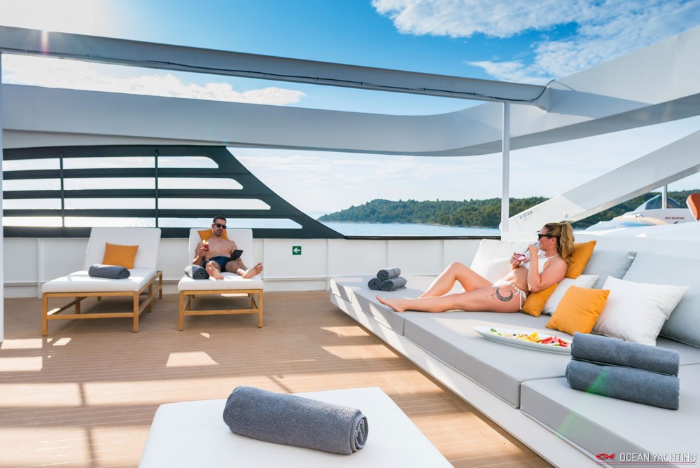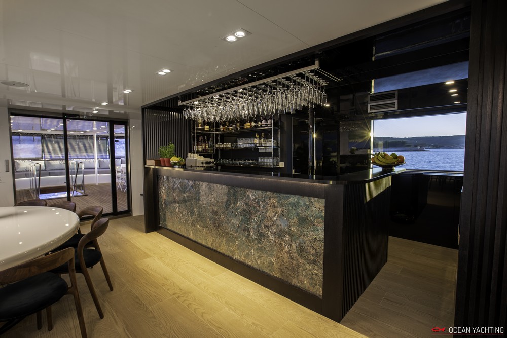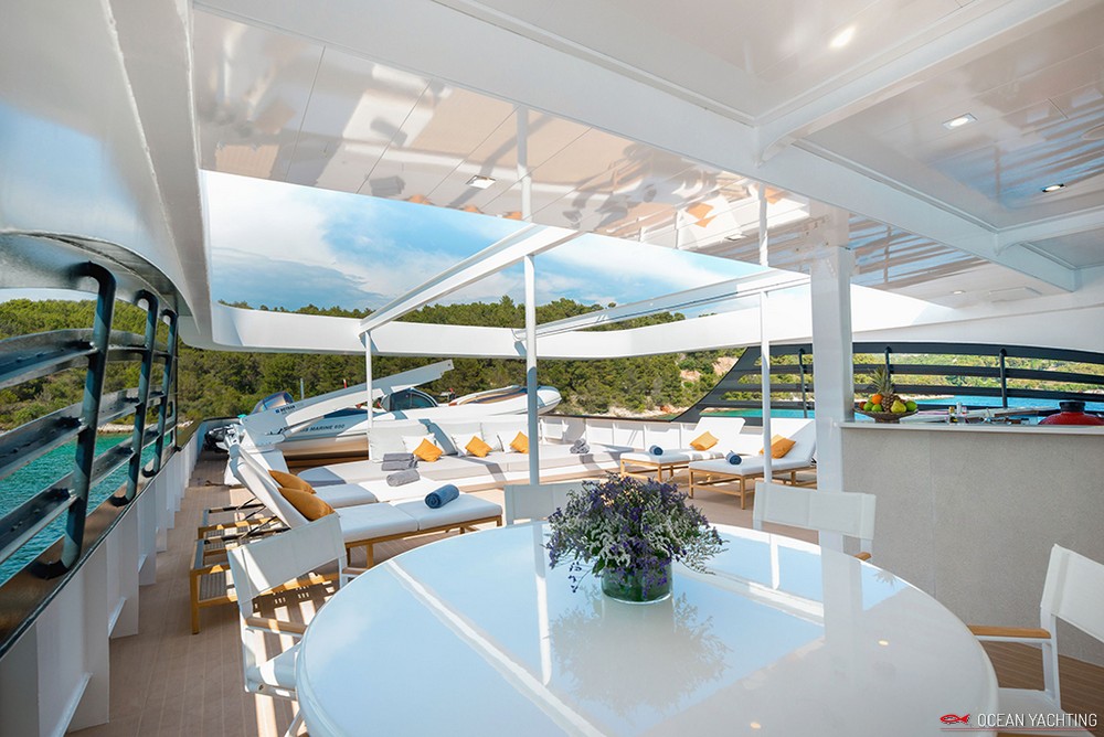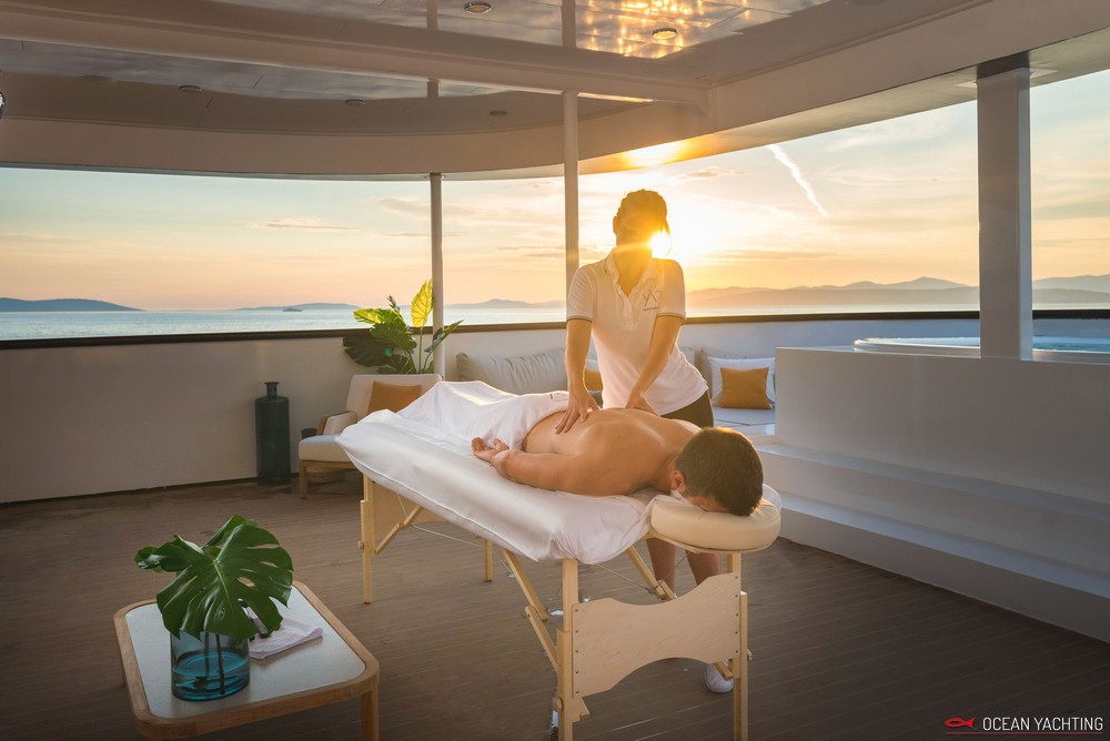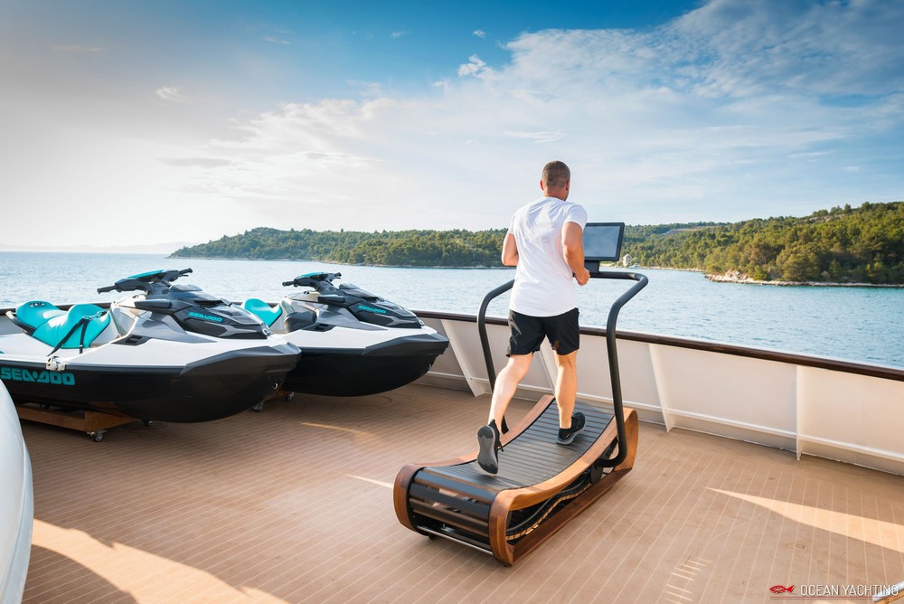 Sauna, Sala massaggi, Idromassaggio in coperta, Sala cinema, Palestra SPA, 2 Moto d'acqua, E-foil elettrico, 4 Stand up paddle, 2 Kayak, Sci nautico, Wakeboard, Ringo, Divano, 2 Tender 6,5 mt con fuoriborodo 150hp,