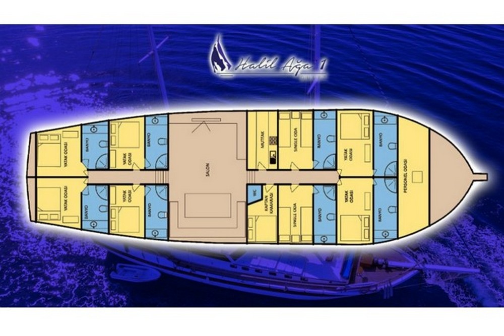 Ali Aga 1 rappresenta un ottimo connubio tra capacità ospiti e prezzo. Caicco Standard ma pulito e ben tenuto con un equipaggio molto apprezzato. Adatto a crociera multi famiglie e grandi gruppi di amici può accogliere fino a 16 ospiti in 6 cabine matrimoniali e 2 twin, con 3-4 persone di equipaggio. La presente scheda non ha finalità contrattuali.