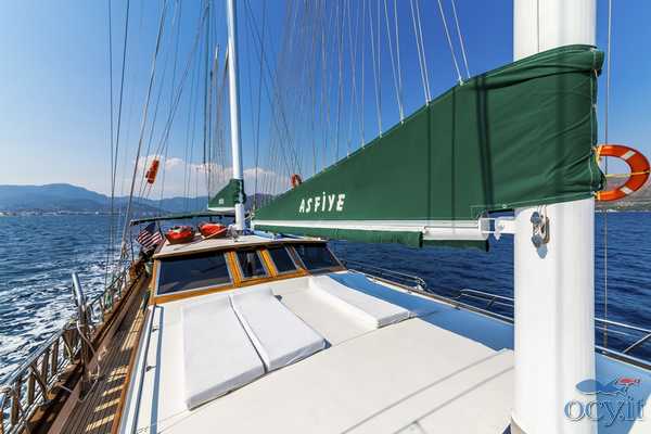 Asfiye è un caicco dall’ottimo rapporto qualità offerta/prezzo. Il nuovo armatore ha deciso di inserirlo nel mondo del charter, dopo diversi anni di uso privato. La barca ha subito un refit nel 2015. 4 cabine (1 master e 3 doppie) fino a 8 ospiti. Per la stagione 2016 sarà in Grecia Ionica. La presente scheda non ha finalità contrattuali.