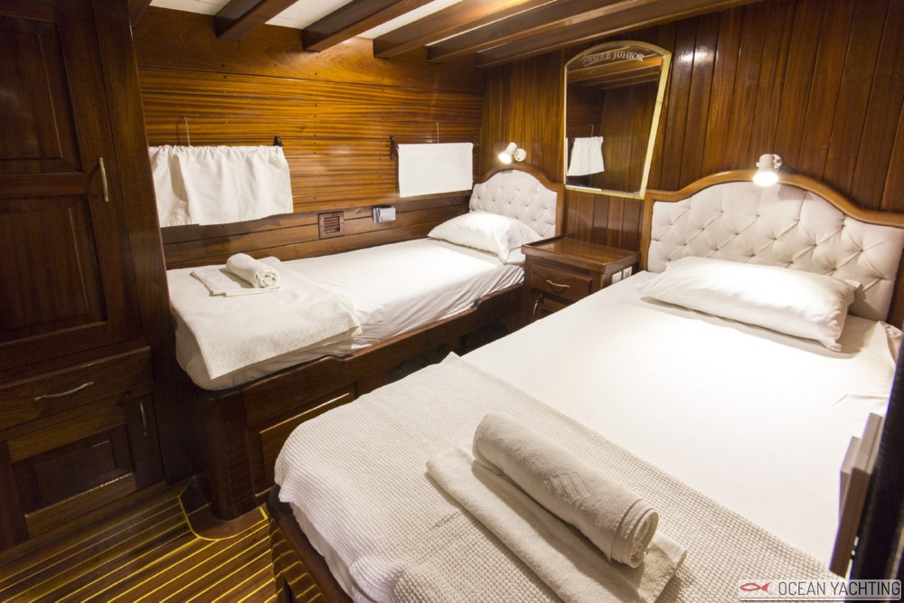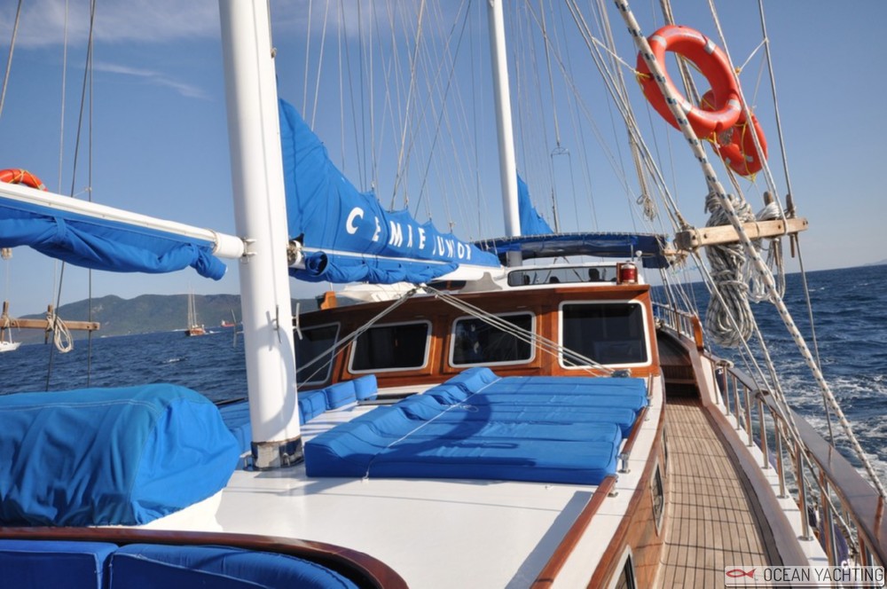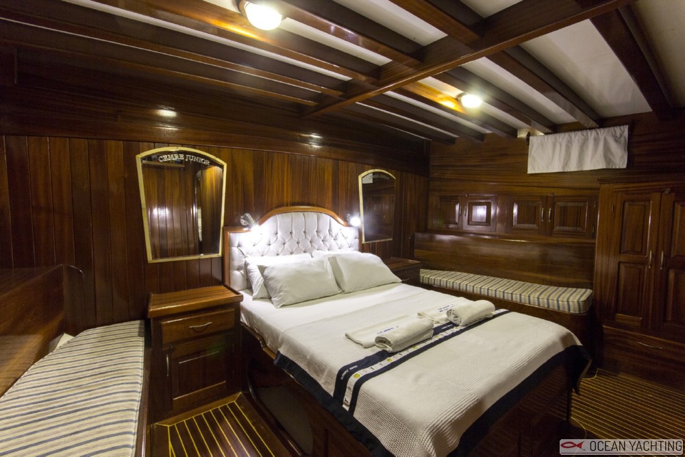 Cemre Junior è un caicco che naviga in Turchia. Offre 6 cabine (2 master e 4 matrimoniali con terzo letto) tutte con servizi privati. Ha subito l’ultimo refit nel 2019. 4 persone di equipaggio. La presente scheda non ha finalità contrattuali.