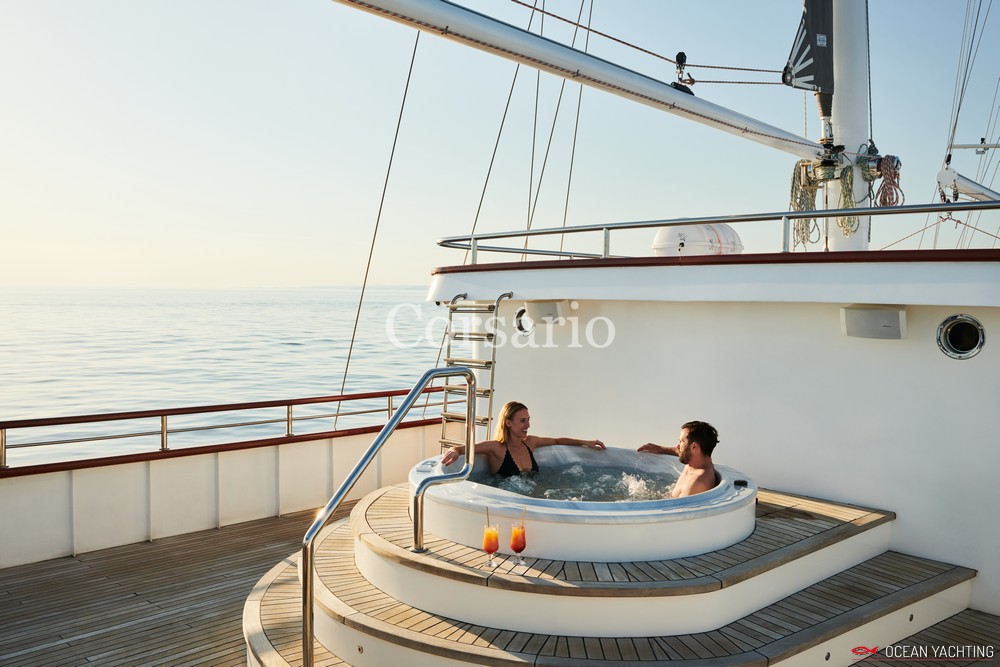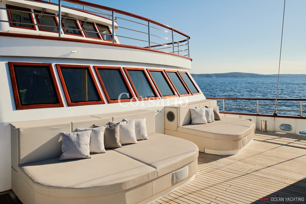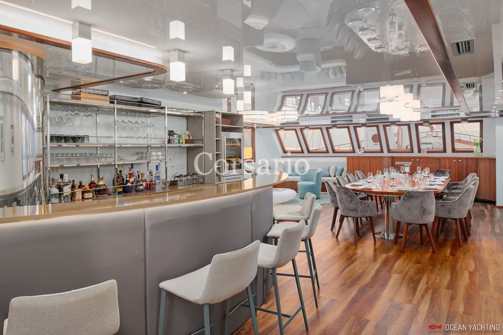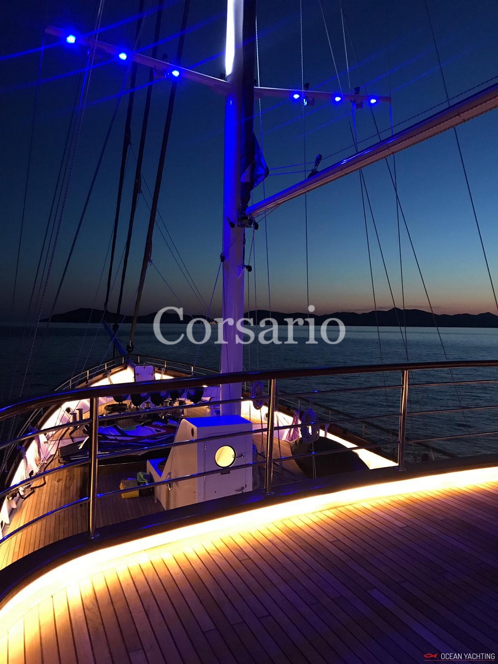 Corsario è un caicco di lusso dalle grandi dimensioni varato nel 2019. Molto elegante può accogliere fino a 12 ospiti in 6 cabine (1 master, 1 VIP, 2 matrimoniali e 2 doppie) con 7-8 persone di equipaggio. Da segnalare la presenza a bordo di una sauna e della vasca idromassaggio in coperta. La presente scheda non ha finalità contrattuali.