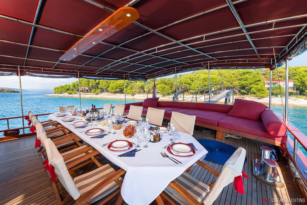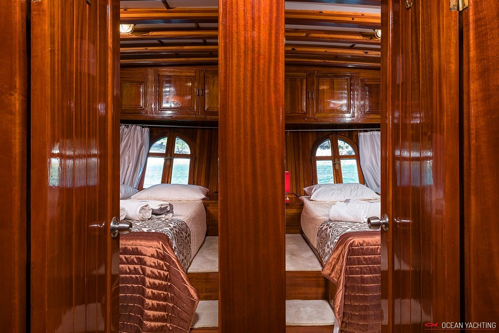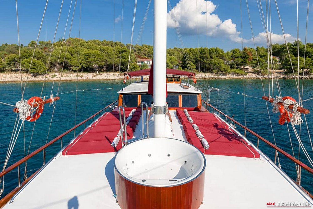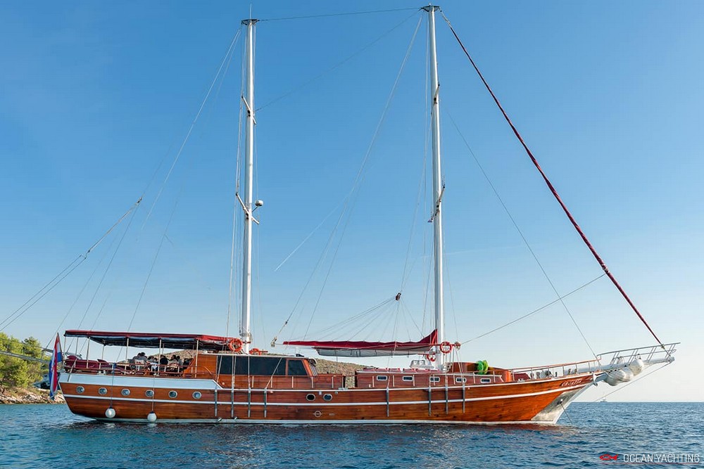 Croatia è il nuovo nome del caicco Hana, caicco di grande successo. Molto comodo e con tantissime attrezzature di bordo per una vacanza perfetta. Può accogliere fino a 12 ospiti in 4 cabine matrimoniali e 3 doppie con servizi privati. Naviga su rotte selezionate. Nell'ultimo refit sono stati aggiunti l’idromassaggio in coperta e la moto d’acqua. La presente scheda non ha finalità contrattuali.