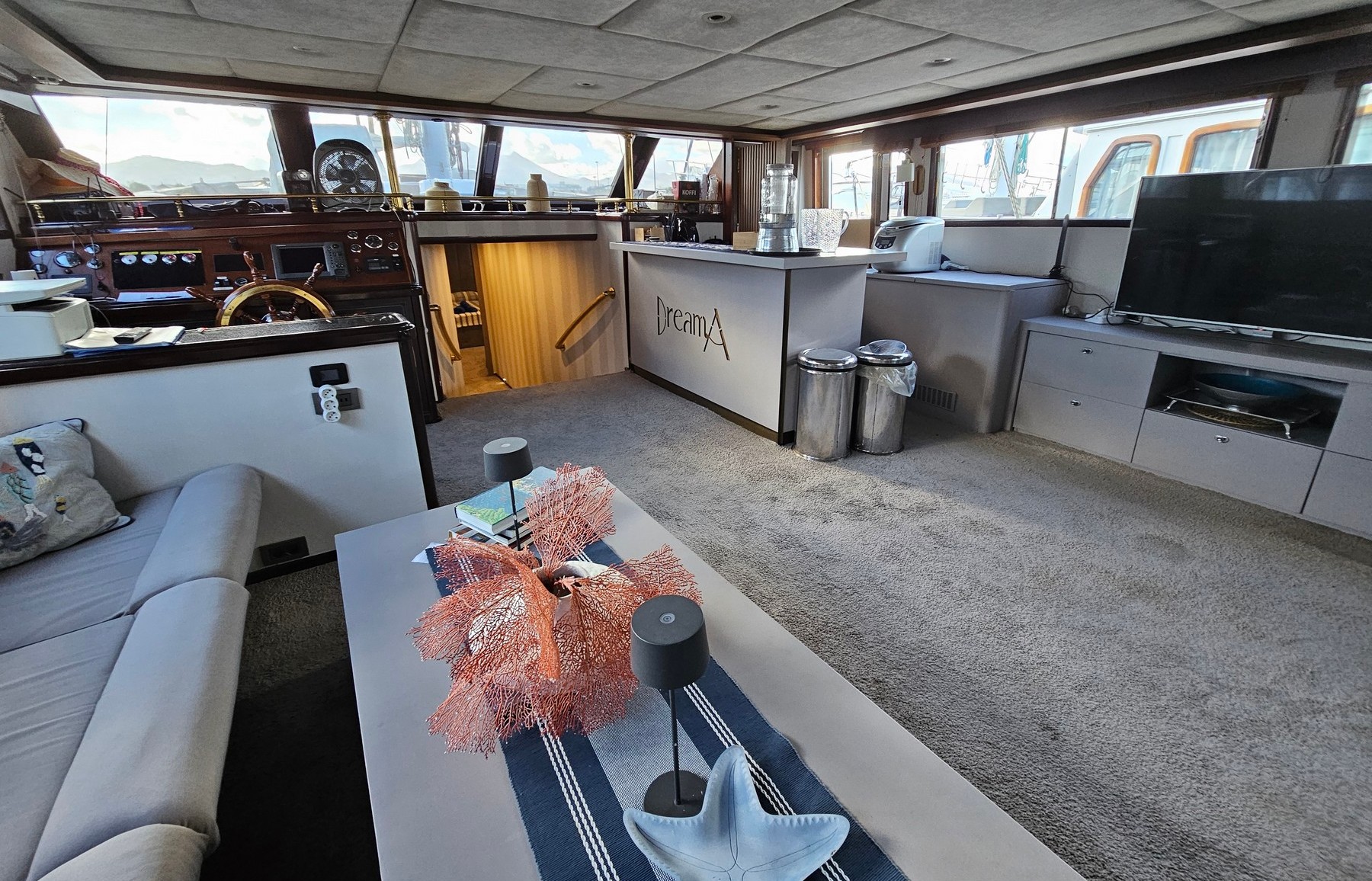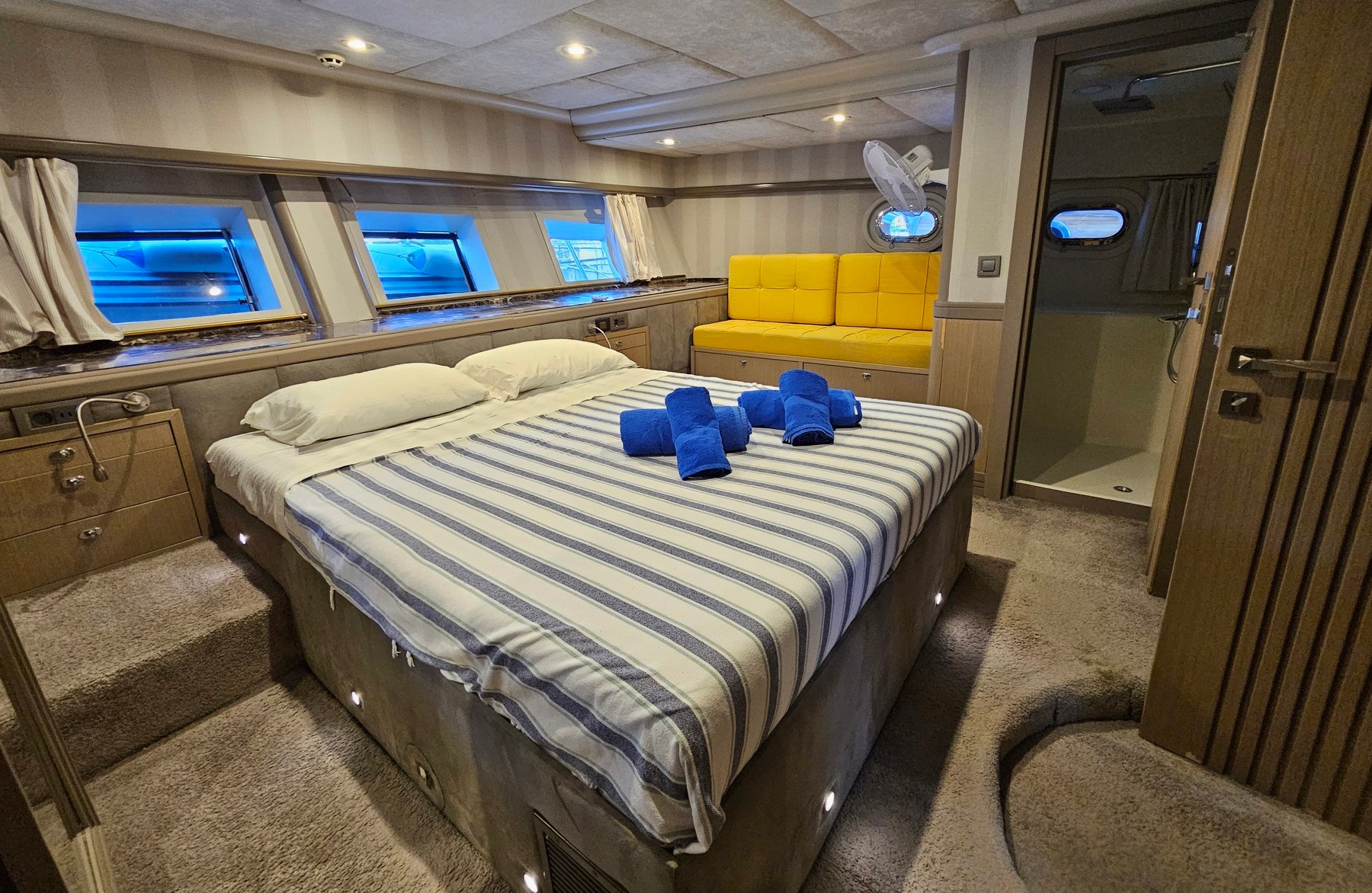 Dream A è un bel caicco che naviga tra Sicilia e Costiera Amalfitana. Può accogliere fino a 11 ospiti in 5 cabine (2 master di cui una con letto aggiuntivo), 2 doppie e 1 twin, serviti da 4 persone di equipaggio. Gli spazi sono sorprendenti, normalmentew tipici di barche di 30+ metri, ha infatti un pozzetto e le 2 master sovradimensionati rispetto alle barche della stessa categoria. La presente scheda non ha finalità contrattuali. Costo da €19.400 a €22.000 a settimana con il gasolio incluso.