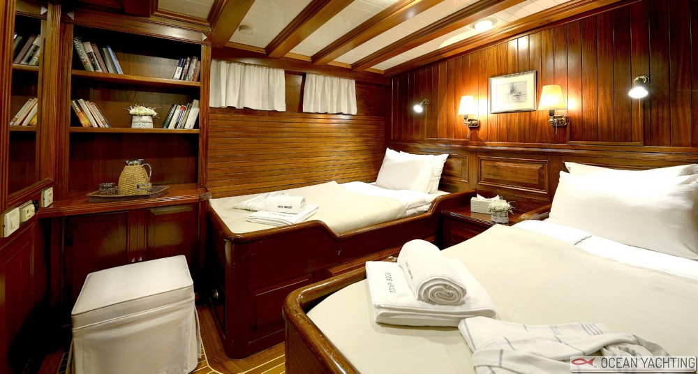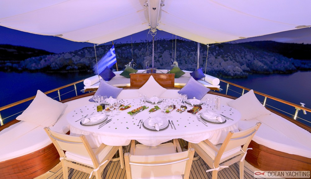 Ecce Navigo è un caicco di lusso che naviga in Grecia Dodecanneso. Può accogliere fino a 10 ospiti in 2 cabine doppie, 2 twin e una master, con 5-6 persone di equipaggio. Il servizio a bordo è molto accurato. La presente scheda non ha finalità contrattuali.