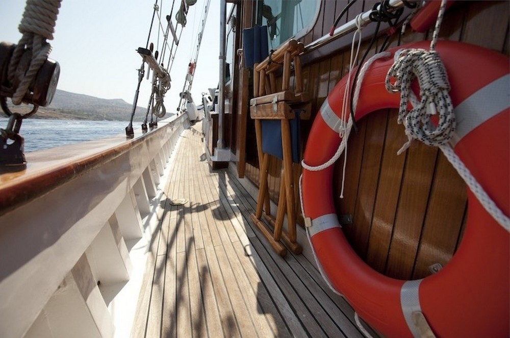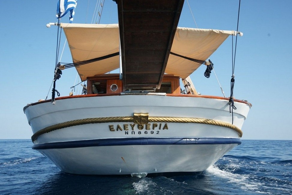 Eleftheria è uncaicco che naviga in acque greche. Offre 3 cabine con 2 wc, 2 persone d'equipaggio. 6 ospiti. Aria condizionata. Salone con sala da pranzo e banco bar. In coperta cuscinerie e zona pranzo esterna. La barca offre il solo servizio di mezza pensione. La presente scheda non ha finalità contrattuali.