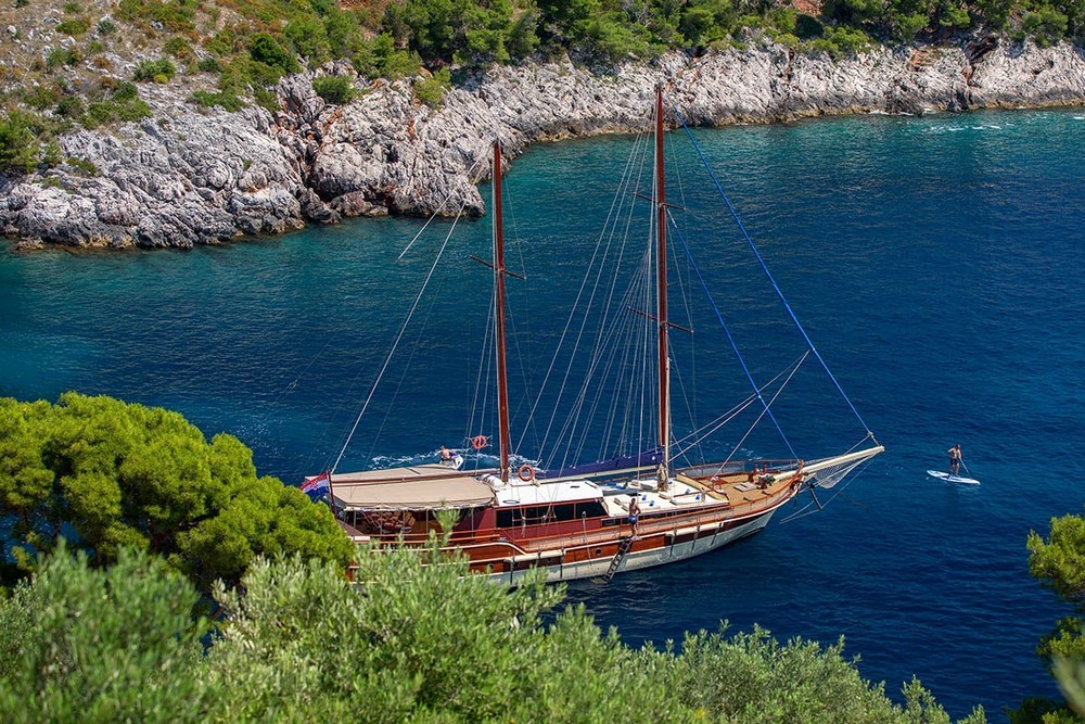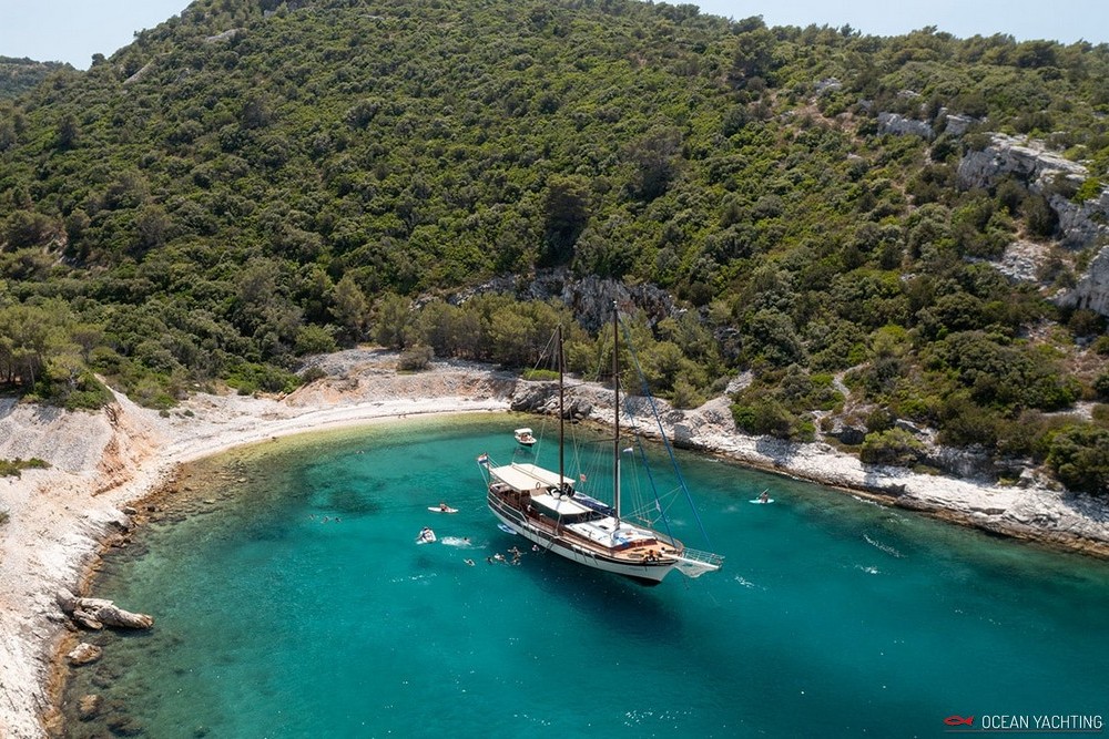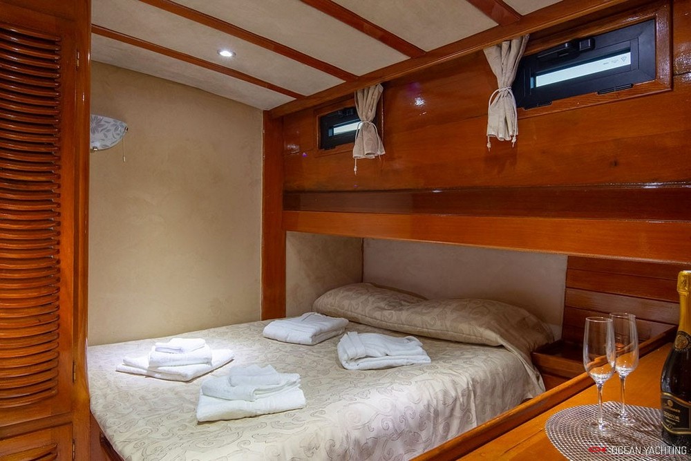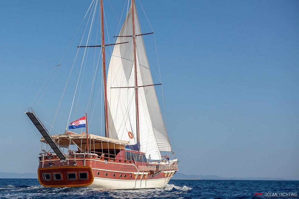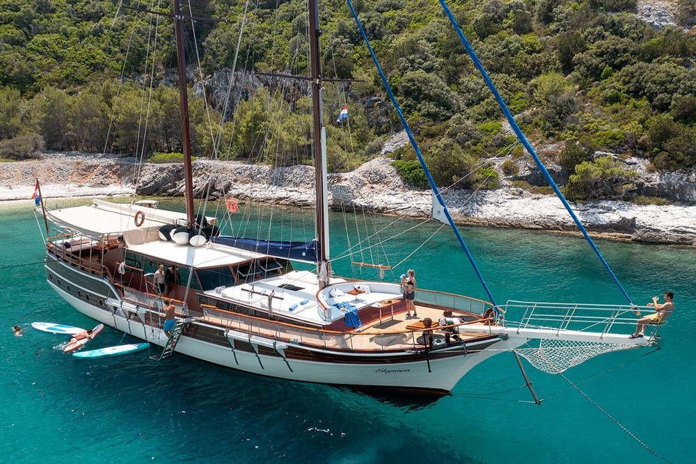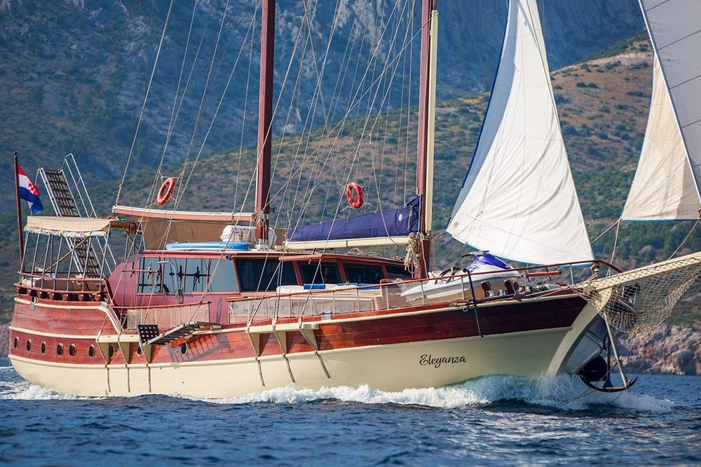 Eleganza è un caicco croato che può accogliere fino a 10 ospiti in 5 cabine (1 master e 4 matrimoniali) con servizi privati. Ristrutturato recentemente, è basato su Spalato per crociere tra isole dalmate o Incoronate. 4 persone di equipaggio in alloggi separati. La presente scheda non ha finalità contrattuali.