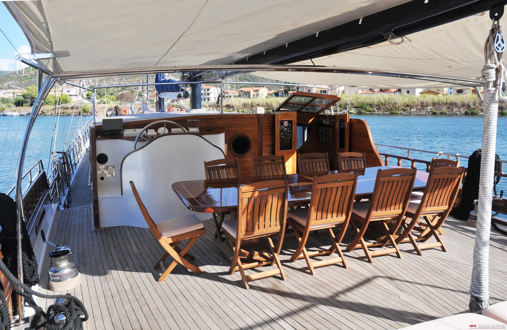 Elianora è uno dei pochissimi caicchi superiori a 24 metri che navighi in Italia. Basato principalmente in Sardegna può accogliere fino a 12 ospiti in 6 cabine (2 master e 4 twin) con 5 persone di equipaggio. La barca offre spazi importanti per una crociera nel amassimo comfort. La preesente scheda non ha finalità contrattuali.