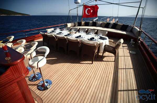 Area di navigazione: Turchia e Grecia Egeo. Fatevi coccolare con un servizio di altissimo livello. Varato nel 2011, Gora è uno dei caicchi più belli e lussuosi di tutto il Mar Egeo. L’equipaggio (7) ha alloggi separati. La barca è elegantissima, anche grazie ai pavimenti in quercia americana che ne conferiscono una luminosità notevole. Le cabine e i bagni sono molto comode e spaziose. 2 cabine hanno la possibilità del terzo letto, per garantire la massima capienze di 12 ospiti. Gli spazi in coperta sono sorprendenti. Prezzo di listino a settimana da Euro 50000. La presente scheda non ha finalità contrattuale.