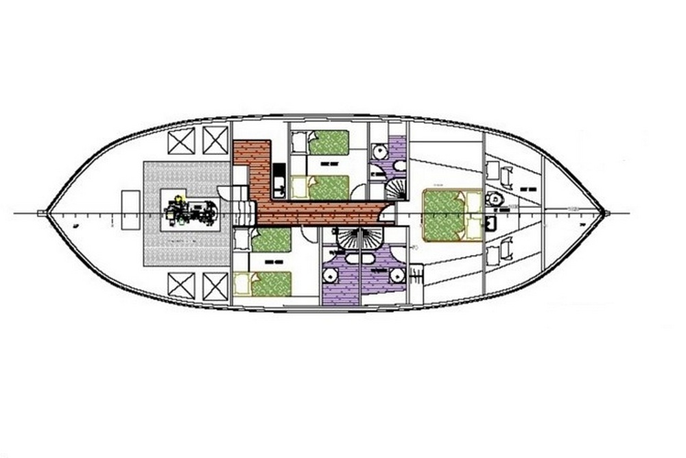 Hayal 62 è un gioiello. Ha il fascino dei caicchi a poppa slanciata (tirandila) ma ha finiture di altissimo pregio. È adatto a viaggi di nozze o famiglie fino a 4 persone. 3 persone d'equipaggio. Solo per i palati fini... La presente scheda non ha finalità contrattuali.