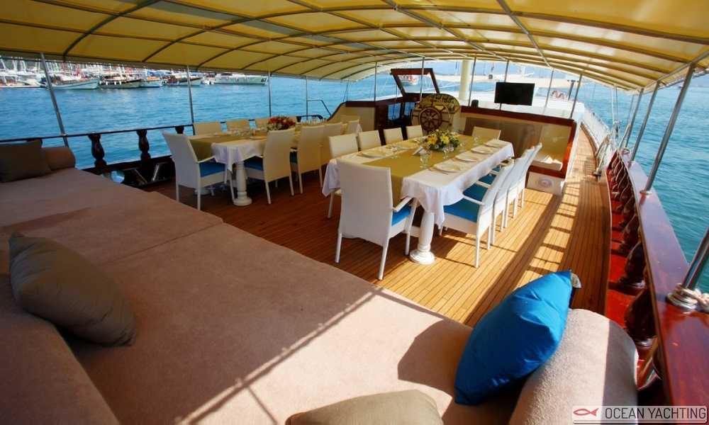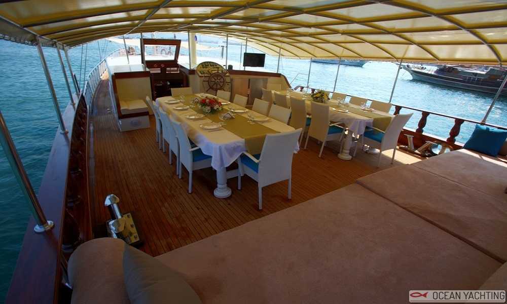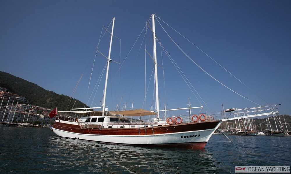 Holiday V è un caicco standard particolarmente adatto per grandi gruppi con un buon rapporto qualità/prezzo. Ha subito un profondo refit nel 2017 portando la capacità a 20 ospiti in Turchia (12 in Grecia) in 8 cabine matrimoniali e 2 twin. La presente scheda non ha finalità contrattuali.