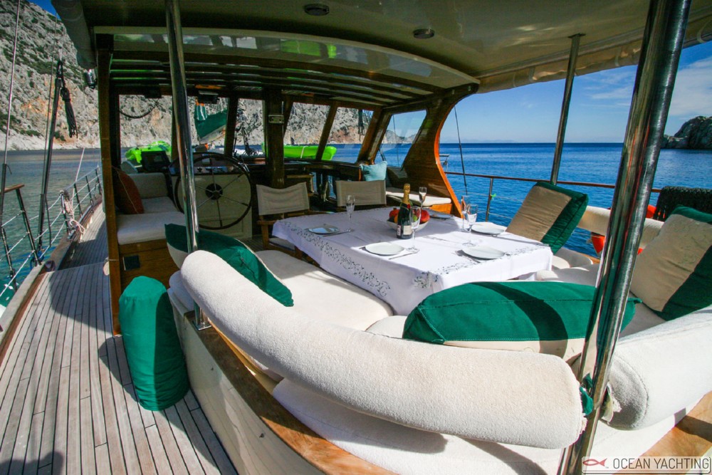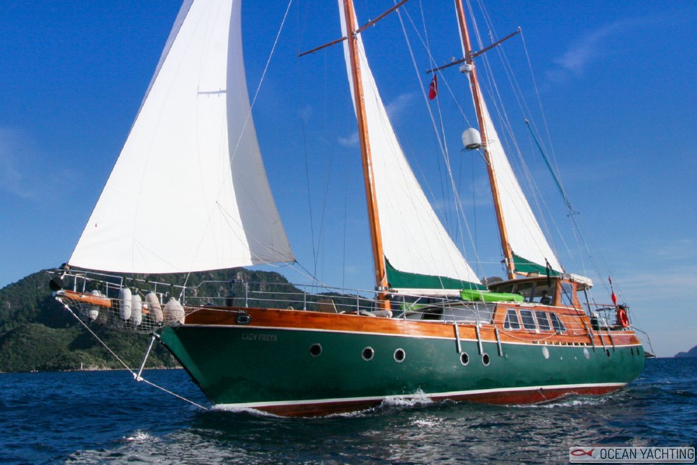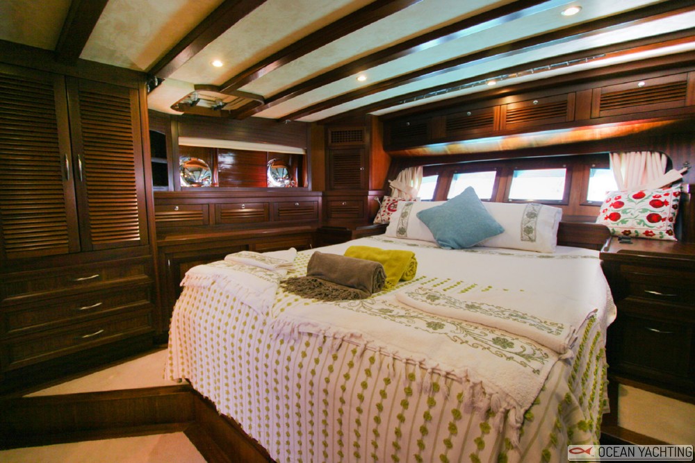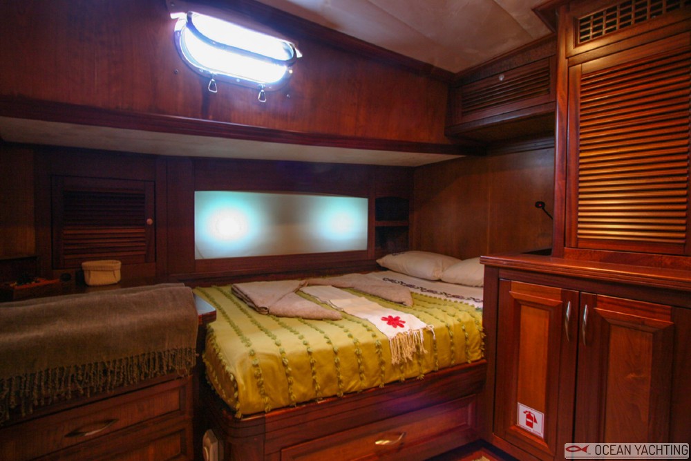 Lady Freya è un caicco che può accogliere fino a 8 ospiti in 4 cabine (2 master e 2 matrimoniali) con servizi privati. Il suo disegno particolare gli da un pozzetto piccolino, a favore della zona solarium e delle cabine piuttosto spaziose, considerata la lunghezza della barca. 3 persone di equipaggio. IL servio a bordo è davvero accurato. La presente scheda non ha finalità contrattuali.