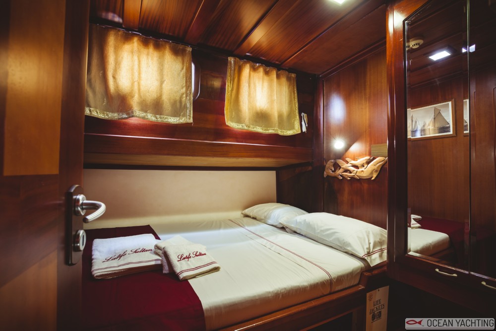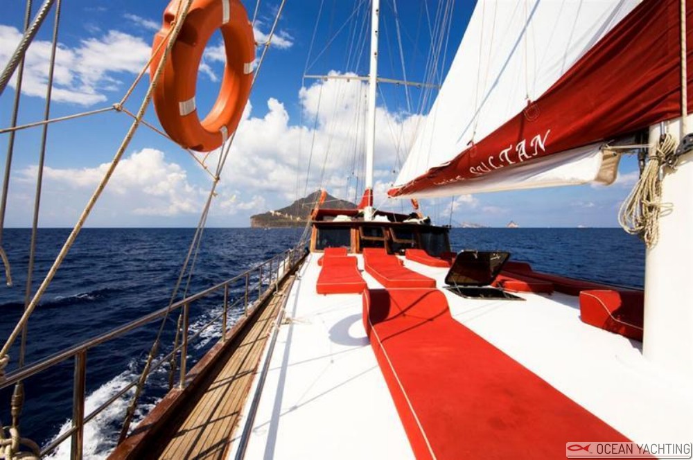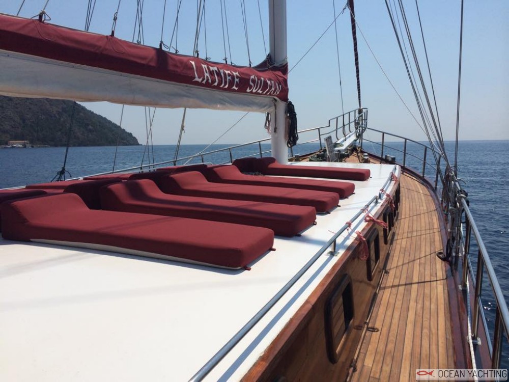 Latife Sultan è un bel caicco che naviga in Sicilia. ha 5 cabine ospiti ma di solito ne vengono date solo 4, tutte con letto matrimoniale con servizi privati. 3 persone di equipaggio. La famiglia che lo gestisce viene da una lunga tradizione di pescatori, quindi garanzia di qualità del cibo a bordo. La presente scheda non ha finalità contrattuali.