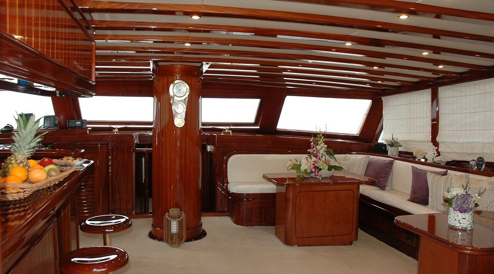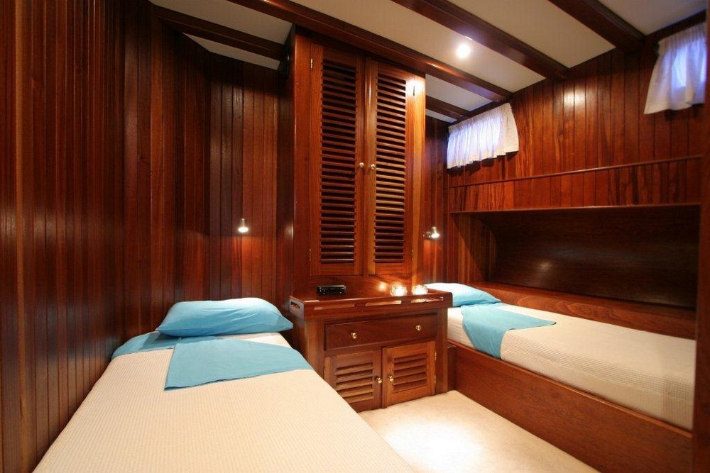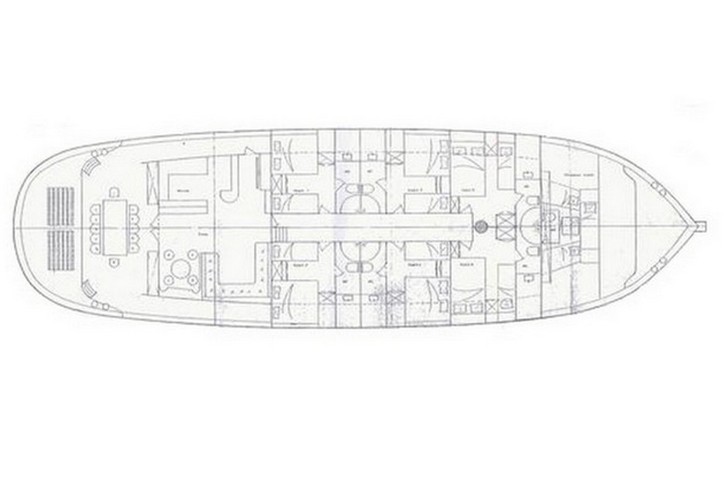 Aria condizionata in ogni cabina e salone, Tender 4,30 con fuoribordo 50 Hp, Attrezzatura da pesca, Canoa, Hi-fi, Sci Nautico e banana, Generatore 220V e 380V, Windsurf, TV Plasma, Attrezzatura snorkeling,