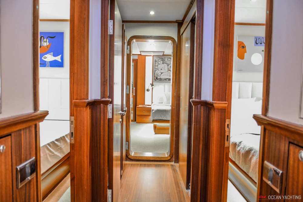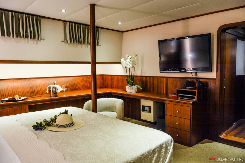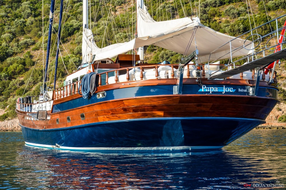 Dalle linee eleganti e accattivanti, Papa Joe può accogliere fino a 10 ospiti in 1 cabina master e 4 matrimoniali con servizi privati. Arredamento di design. Equipaggio espertissimo a gestire la clientela più esigente. Una della cabine doppie può essere combinata con la grande cabina armatoriale (50mq) per renderla una suite famigliare. La TV a grande schermo può essere ruotata per essere vista dalla coperta. Ha la licenza di charter per la Croazia e l'Italia. La presente scheda non ha finalità contrattuali.