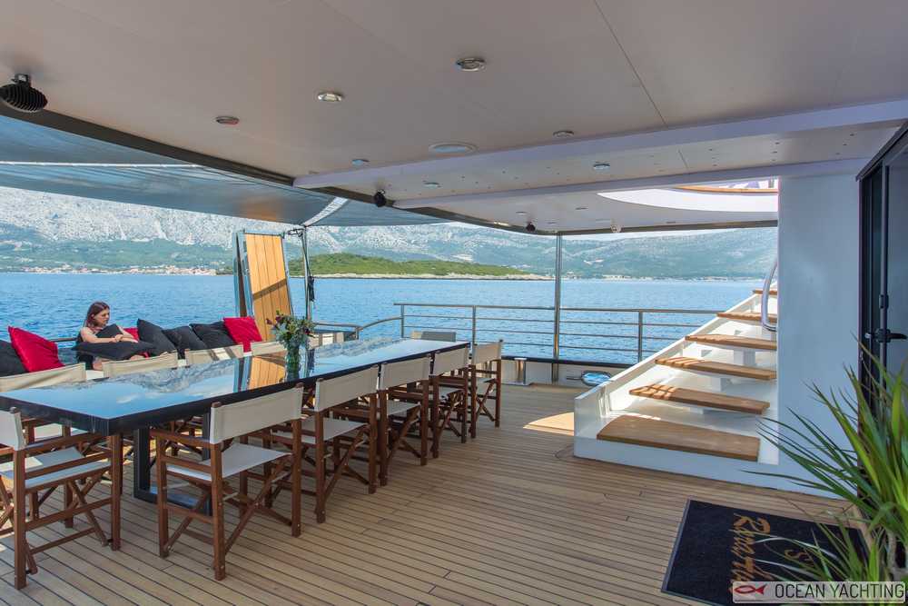 Rara Avis, varata nel 2018, è una barca di ottimo livello che naviga in Croazia e può accogliere fino a 12 ospiti in 6 cabine (1 grande master, 1 VIP e 4 matrimoniali) e 6 persone di equipaggio. Dagli spazi interni ed esterni generosissimi, un ampio fly con idromassaggio, una linea moderna e di design. Relax e lusso si fondono per una vacanza indimenticabile. La presente scheda non ha finalità contrattuali.