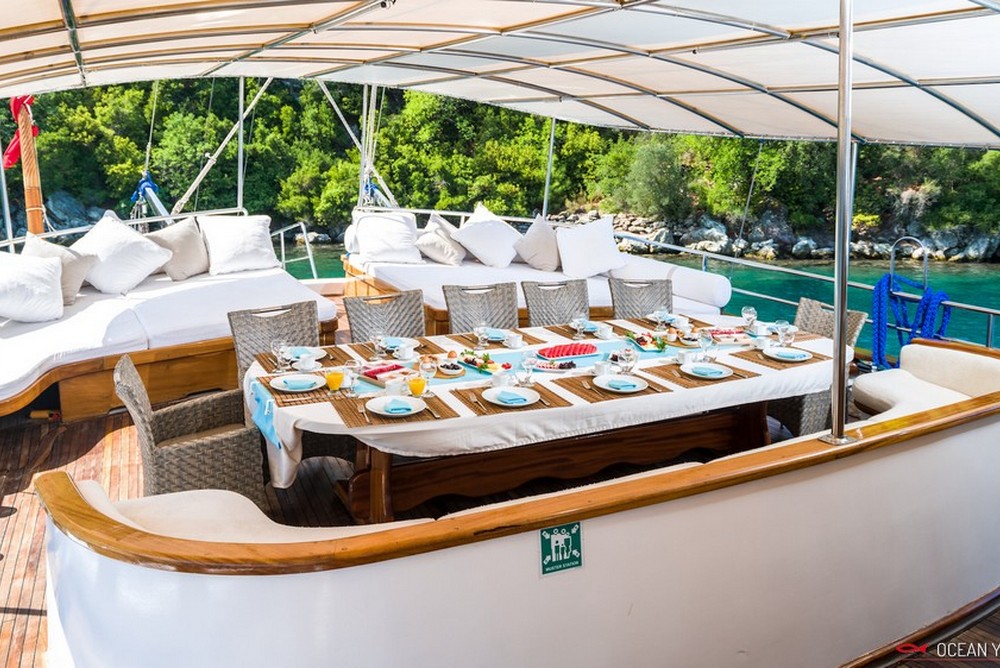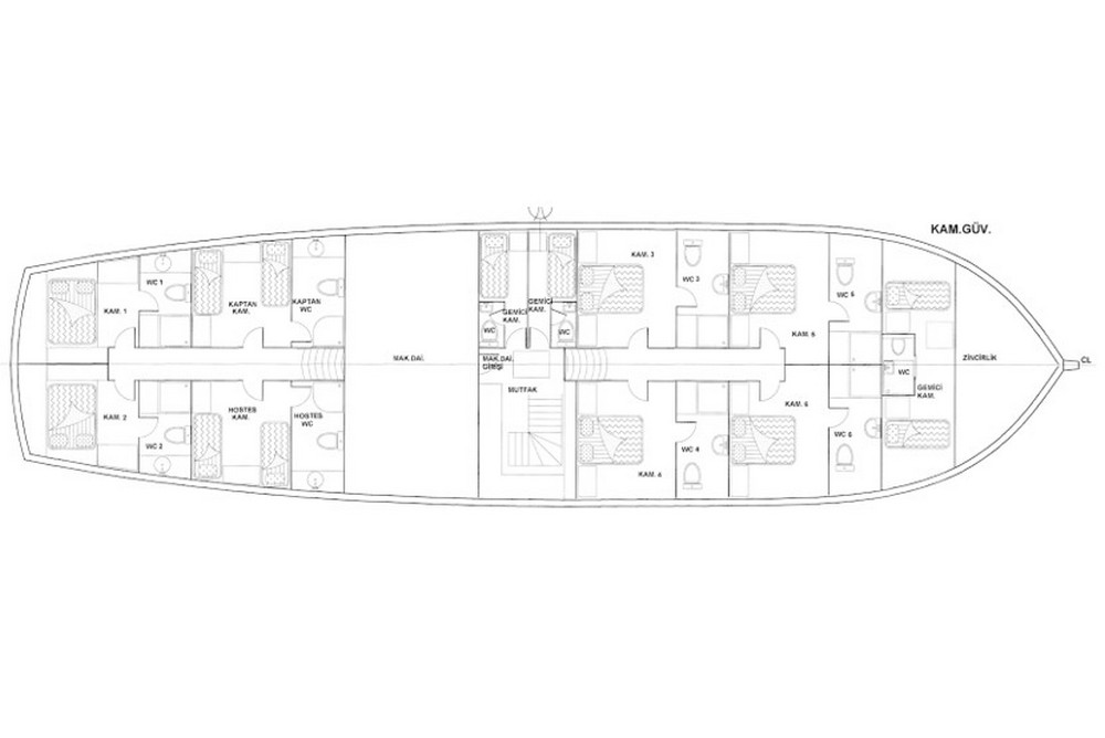 Sailing Nou Taylan è un ottimo caicco che naviga in Turchia. Può accogliere fino a 18 ospiti in 6 cabine matrimoniali e 2 triple. 5 persone di equipaggio. La presente scheda non ha finalità contrattuali.