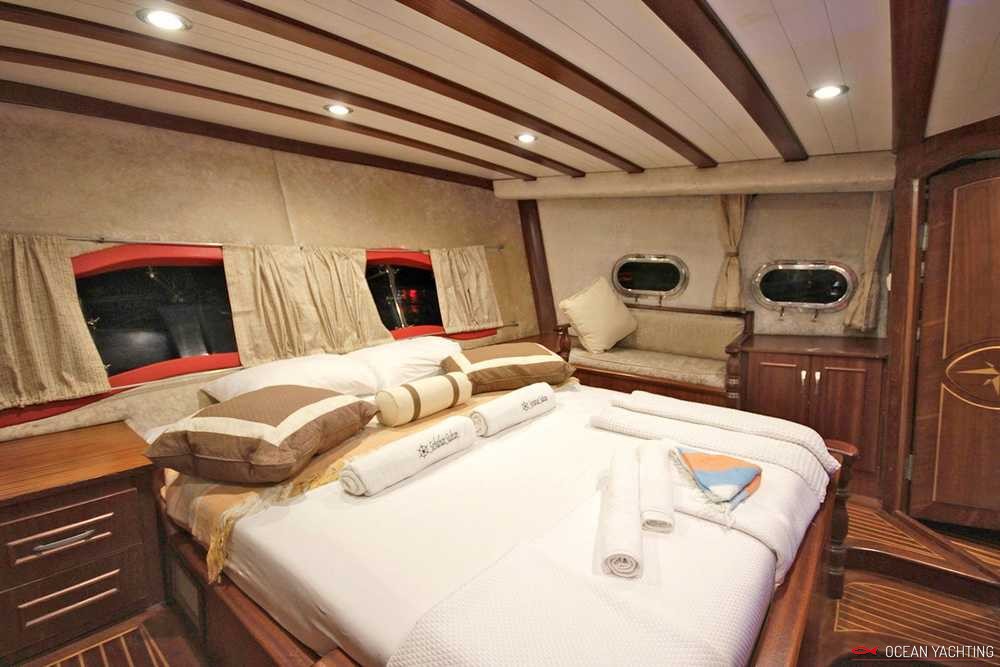 Sebahat Sultan è un caicco dall’ottimo rapporto qualità/prezzo completamente ristrutturato nel 2015. Può accogliere fino a 10 ospiti in 2 cabine master e 3 matrimoniali, con servizi privati. 3 persone d’equipaggio. La presente scheda non ha finalità contrattuali.