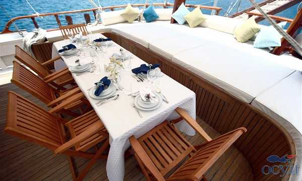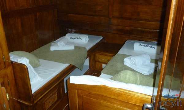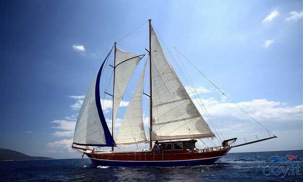 Sergul Sultan è un’ottima alternativa per coloro che cercano un caicco con aria condizionata spendendo veramente la cifra giusta. Le due cabine di prua non hanno il box doccia e sono di dimensioni minori. Ha un’ampia zona solarium. Può accogliere fino a 16 ospiti in 6 cabine matrimoniali e 2 doppie con ssrvizi privati. L’equipaggio ha alloggi separati. La presente scheda non ha finalità contrattuali.