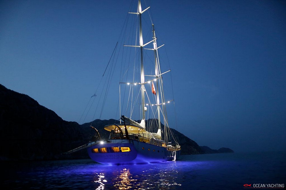 Silver Moon è un caicco di alto livello che naviga in Turchia. Può accogliere fino a 9 ospiti in 1 master, 1 Vip, 1 tripla e una matrimoniale. E' presente anche una piccola singola per persona di servizio quale baby sitter con bagno privato. 5 persone di equipaggio. La particolarità di questa barca sono i legni interni in ciliegio, dal colore caldo. €35.000/42.000 a settimana. La presente scheda non ha finalità contrattuali.
