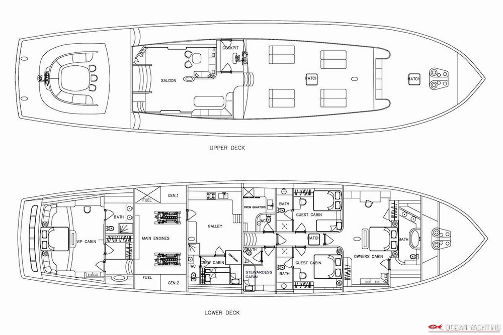 Tender di servizio 140hp, Possibilità di imbarcazione di servizio per watersport 400hp, Sci nautico, Ringo, Wakeboard, 2 SUP, 2 Kayak,