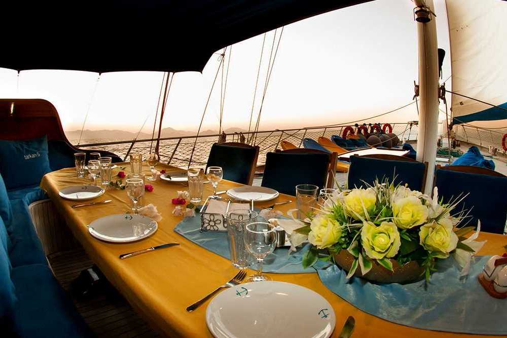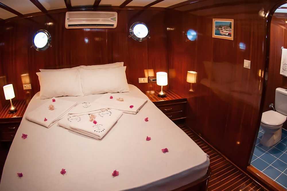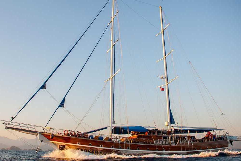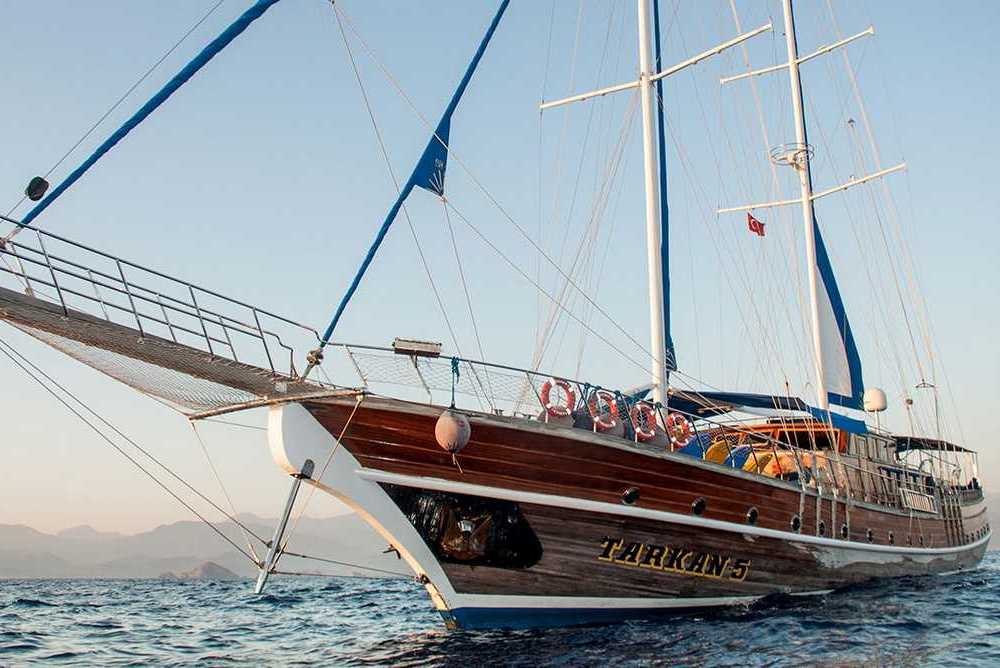 Tarkan 5 è un caicco dai grandi spazi. Gemello del Kayhan 12 può ospitare fino a 18 ospiti in 6 cabine matrimoniale 2 triple. L’equipaggio ha alloggi separati. La presente scheda non ha finalità contrattuali.