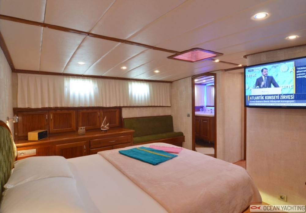 Zorbas è un bel caicco 2 cabine, adatto quindi ad una/due coppie, una famiglia o un viaggio di nozze. Dispone di una doppia e una master, ma lo spazio davvero utile è all'esterno, con un grande pozzetto e un grande solarium. 2-3 persone di equipaggio. La presente scheda non ha finalità contrattuali.