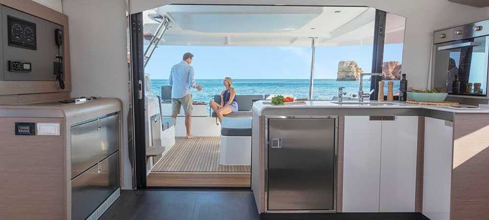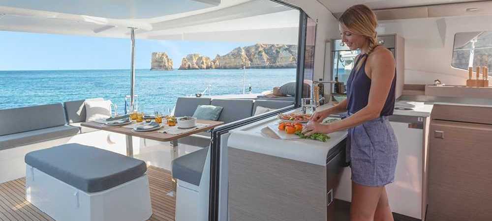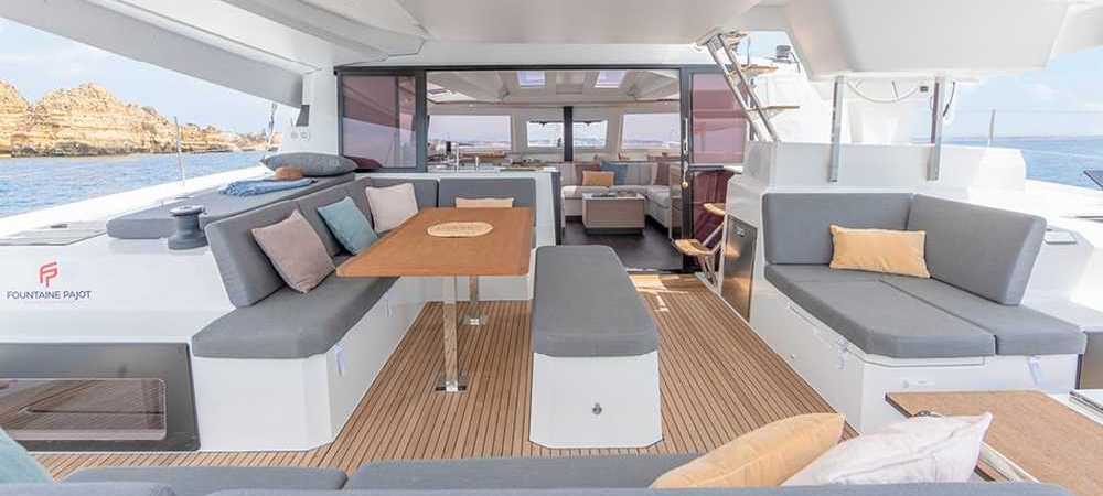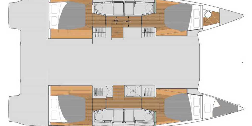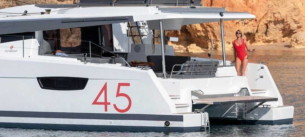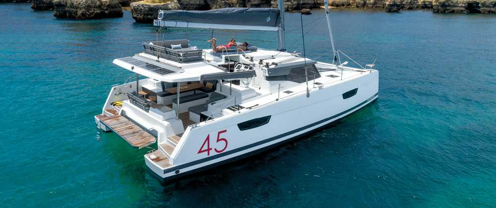 Il nuovo Elba 45 è un catamarano dalle linee moderne e pulite. L'ampia apertura principale fornisce uno spazio continuo tra dinette e pozzetto molto comodo ma la caratteristica principale è l'ampio fly, considerando la dimensione della barca. Esiste in versione armatoriale con 3 cabine e 3 wc o in versione 4 cabine 4 wc. La presente scheda non ha finalità contrattuali.