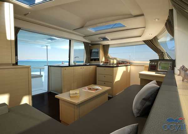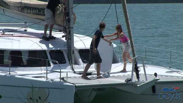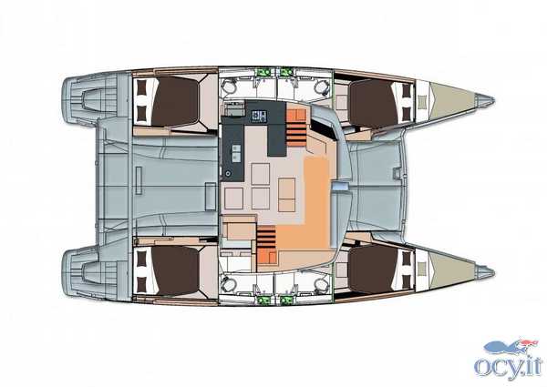 L'Helia 44 è un modernissimo catamarano che è stato progettato per i più alti standard di ecocompatibilità e risparmio energetico. Le ampie pannellature solari, i sistema di gestione dei consumi e l'illuminazione a led permettono praticamente di non dover masi ricaricare le batterie. Gli spazi interni ed esterni (compreso il fly) sono molto comodi e spaziosi, per una crociera in completo relax. Può essere in versione 3 o 4 cabine + 2. La presente scheda rappresenta il modello offerto e non ha finalità contrattuali.