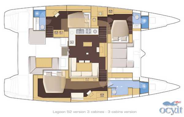 Il lagoon 52 sostituisce il fortunatissimo Lagoon 500. Esternamente è caratterizzato da linee più pulite, un pozzetto di poppa molto spazioso, un pozzetto di prua, un flybridge e zona timoneria con spazio prendisole. Gli interni, progettati dallo studio Nauta Design, prevedono allestimenti da 3 a 6 cabine + cabinette di prua per l’equipaggio, tutte con bagno privato. Le due cabine di poppa possono avere accesso dal pozzetto. La presente scheda non ha finalità contrattuali e rappresenta il modello in versione standard.