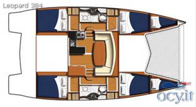 Catamarano leader nella sua classe per qualità dei materiali e del confort (le cabine hanno un'altezza netta pari a 1,95mt). Le cabine singole di prua sono molto piccole e quindi utilizzabili solo da bambini. La presente scheda non ha finalità contrattuali e rappresenta la tipologia di imbarcazione proposta, non la barca specifica e gli accessori del preventivo.