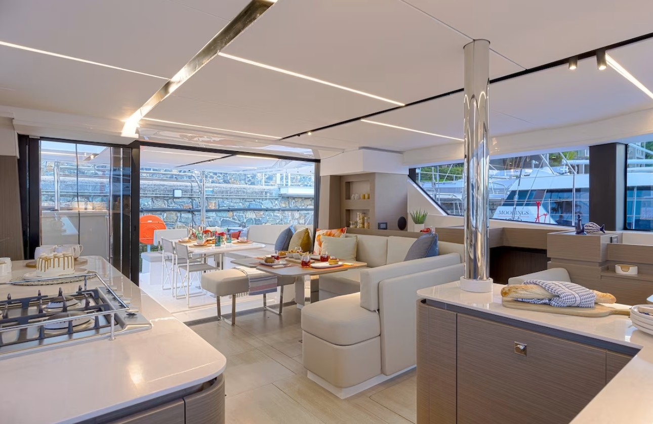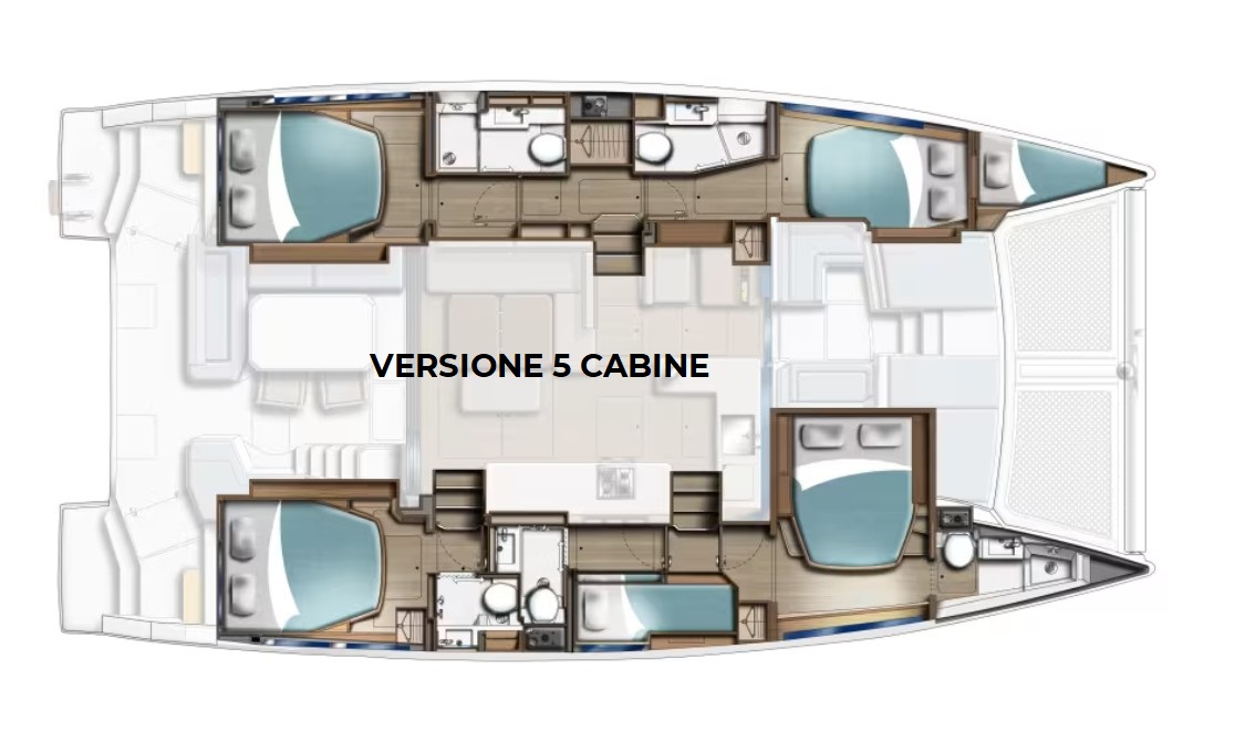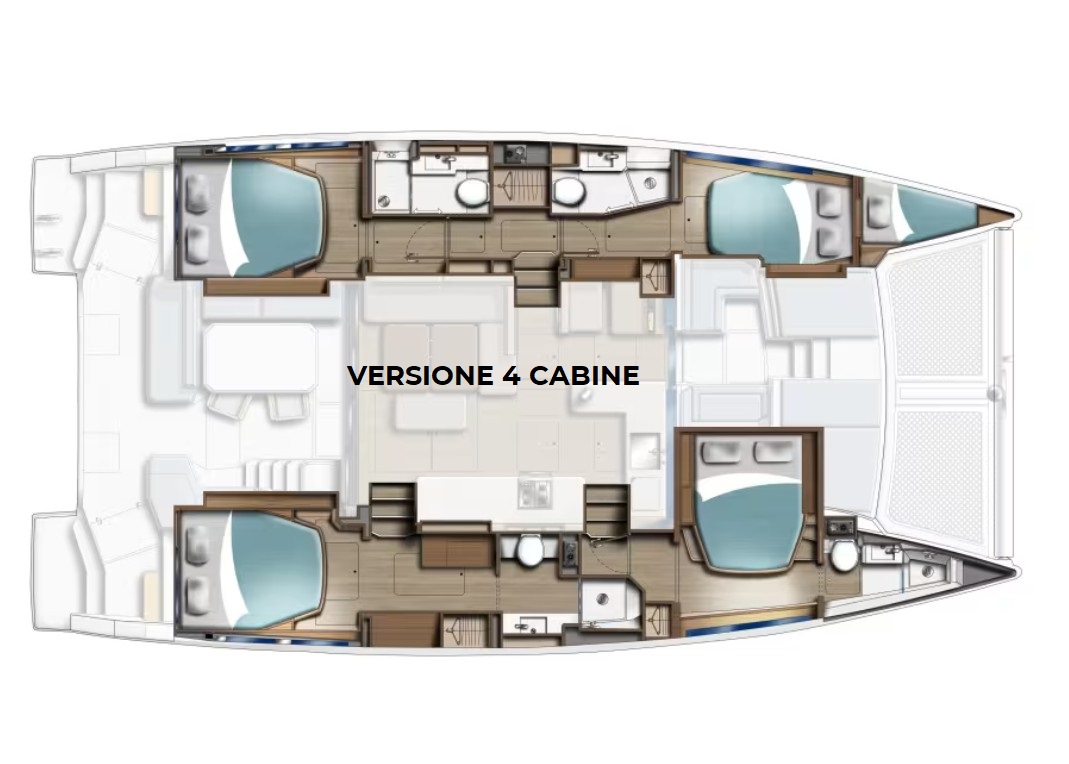 Il Leopard 46 è disponibile nella versione 4 cabine 4 wc (464) e 5 cabine (di cui 1 a castello) 5 wc, entrambe con la possibilità di cabinetta di prua con servizi per lo skipper (solo in certe destinazioni è ammesso, altrmenti userà una cabina ospiti). Catamarano di nuova generazione si distingue per gli spazi comodissimi, considerata la lunghezza, per la luminosità del soggiorno, la presenza del flybridge il pozzetto di prua con accesso dal soggiorno. Particolarmente apprezzati sono il frigorifero e il barbeque integrati in pozzetto. Tra gli accessori sono presenti, nella flotta Suinsail e Moorings, il generatore, il dissalatore, l'aria condizionata, la TV, i pannelli solari, luci subacquee e i vewntilatori in cabina. La presente scheda non ha finalità contrattuali.