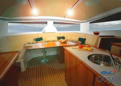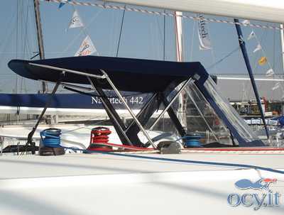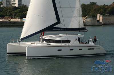 Evoluzione del Nautitech 44, presenta sul tetto dell'hard top i pannelli solari. Si differenzia in 441 (con singola timoneria rialzata e piccolo bimni a protezione del timoniere) e 442 con i classici 2 imoni a poppa degli scafi. Spazi generosi sia in cabina che pozzetto/dinette. La presente scheda non ha finalità contrattuali e rappresenta la tipologia di imbarcazione proposta, non la barca specifica del preventivo.