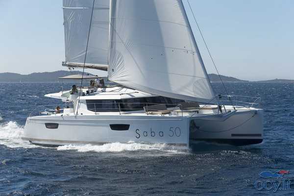 Il Saba 50 è un catamarano della Fountain Pajot disponibile in 2 versioni: MAESTRO, con 4 cabine (1 master) 4 wc e spesso 2 cabinette singole di prua o QUINTET con 5 cabina + 1 cabina più piccola 6 wc. Esternamente la barca è dotata di flybridge. La presente scheda non ha finalità contrattuali.