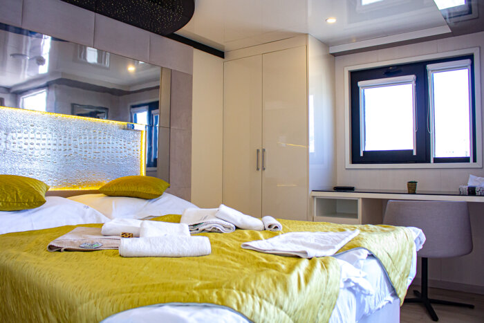 Ave Maria è un minicruiser costruito nel 2018, che può accogliere 38 ospiti in cabine spaziose dotate di aria condizionata e servizi privati. Naviga in Croazia e ha un ampio solarium e una vasca idromassaggio. Sul ponte superiore si trovano 11 cabine VIP dotate di balcone. La presente scheda non ha finalità contrattuali.