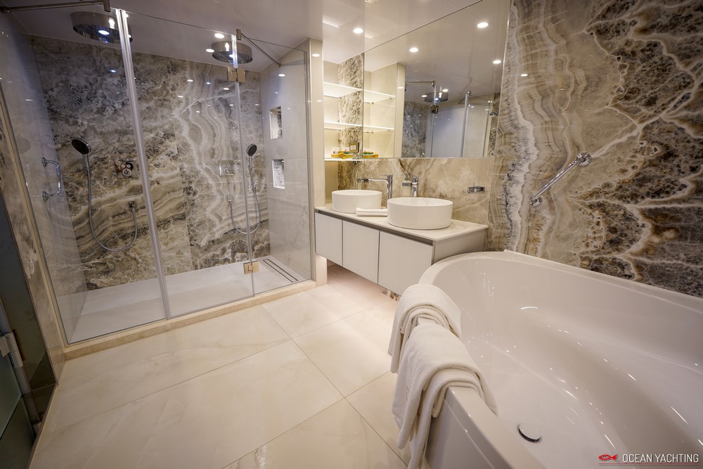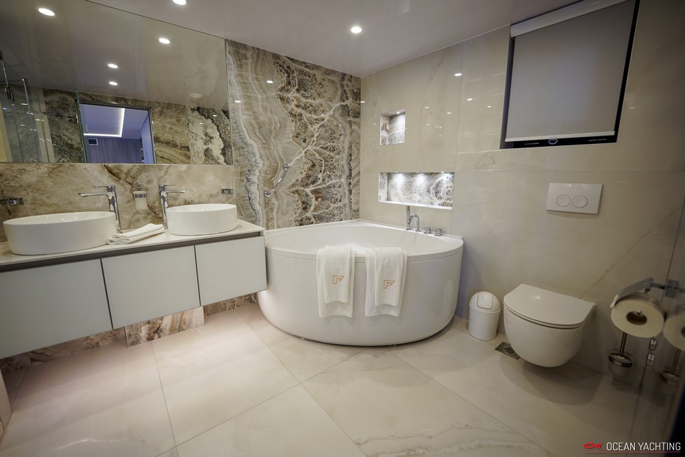 Idromassaggio in coperta, Sala sauna, Palestra, Sala massaggi, 2 moto d'acqua, 2 Seabob, Efoil, Eletric paddleboard, Kayak, 5 SUP, Wakeboard, Tube, Ringo, Piattaforma galleggianta, 2 Tender, Sala cinema,