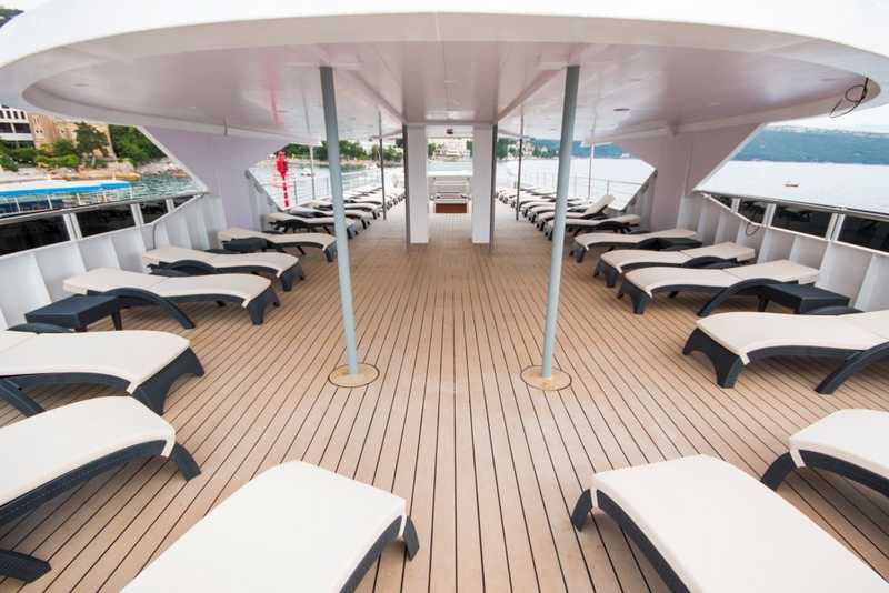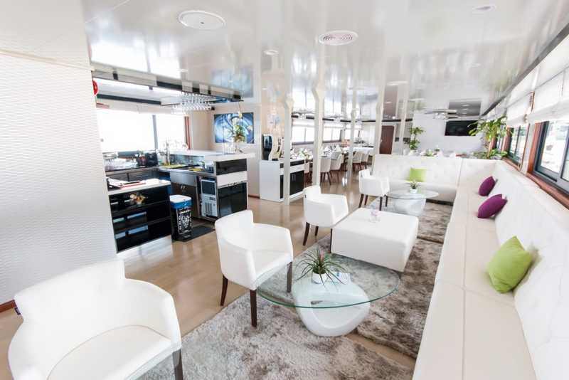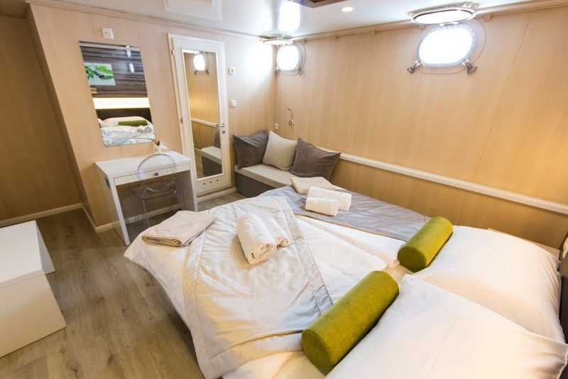 Infinity, di categoria De Luxe Superior, è stato varato nel 2015 e può accogliere fino a 38 ospiti in 19 cabine (17-19mq) matrimoniali e twin (9 VIP sul ponte superiore con balcone privato, 2 sul ponte principale con 2 grandi finestrature e 8 al punte inferiore. Tutte le cabine twin possono essere trasformate in matrimoniali). Di disegno moderno dispongono di aria condizionata, cassaforte, sistemi antincendio, tavolino di cortesia, divanetto, bagno privato con asciugacapelli. Il salone da pranzo nel ponte principale offre una zona bar, TV LCD, tavolini riservati, a un’area lounge. La cucina adotta gli standard HACCP. Offre inoltre grandi spazi esterni (250mq, con porzione coperta di 70mq), con lettini nella zona della jacuzzi estarna. Ha inoltre 2 docce esterne, 2 bagni di servizio esterni e una piattarforma di poppa a favorire la discesa e risalita dall’acqua. La presente scheda non ha finalità contrattuali.