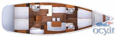 Comodo 53' dei cantieri Jeanneau. Esistono versioni 3-4 e 5 cabine, con 2, 3 o 4 wc. La presente scheda non ha finalità contrattuali e rappresenta la tipologia di imbarcazione proposta, non la barca specifica e gli accessori del preventivo.