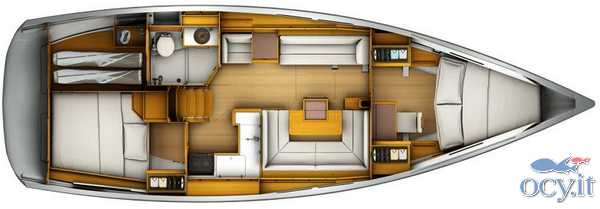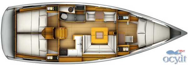 Il Sun Odyssey 419 è un monoscafo comodo evoluzione del fortunatissimo 409. Adatto a navigazioni comode ma divertenti, è prodotto in versione 2 o 3 cabine con 1-2 wc. La presente scheda non ha finalità contrattuali e rappresenta la tipologia di imbarcazione proposta, non la barca specifica del preventivo.