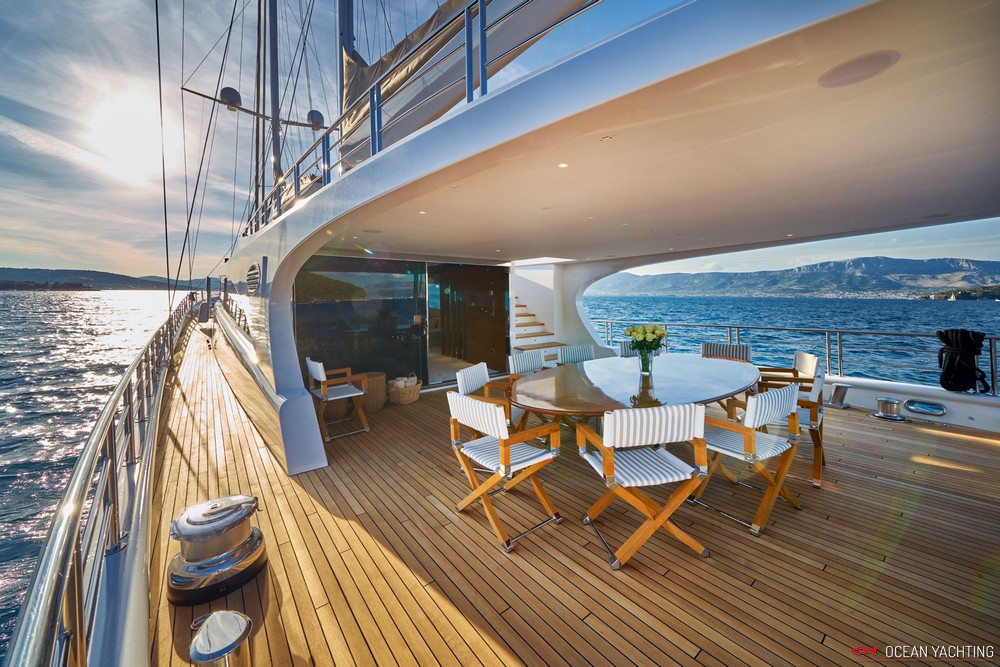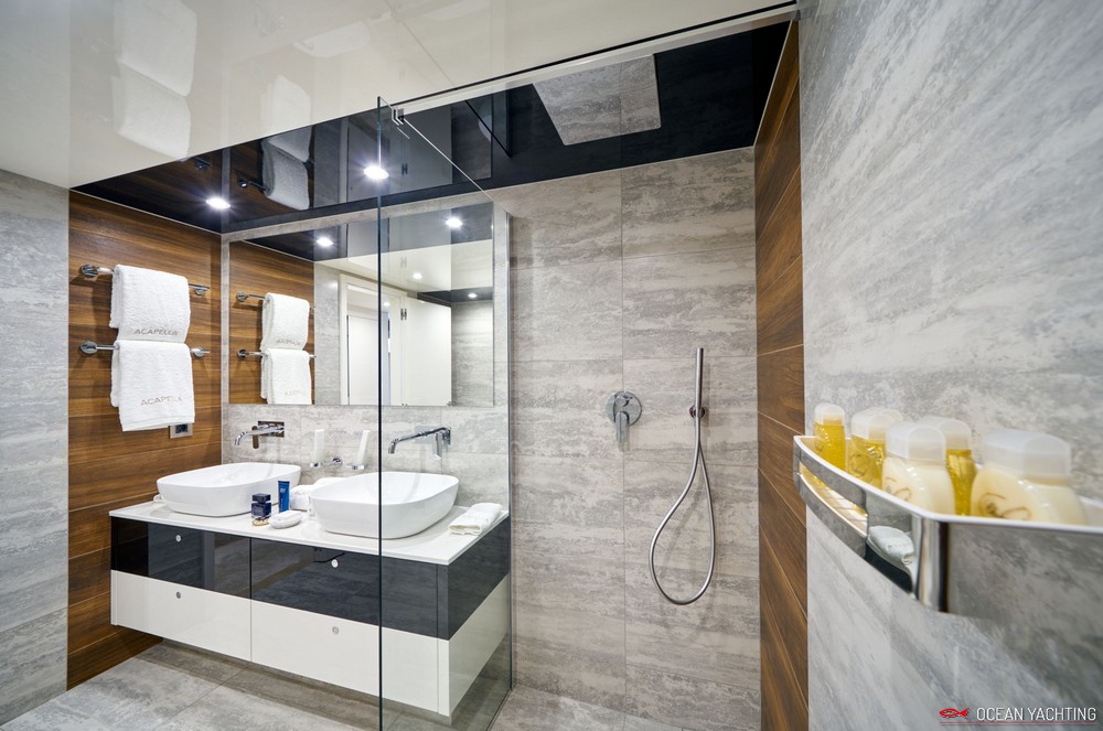 Acapella non è un caicco tradizionale, ma segue le direttive della nuova cantieristica croata (ma anche turca) che cerca di produrre dei progetti di imbarcazioni che sfruttino l lati positivi dei caicchi veri e propri, delle barche a vela e delle barche a motore. Dalle grandi dimensioni e dalle linee moderne e di design, offre grande confort e lusso. Può accogliere fino a 12 ospiti in 5 cabine (3 master, 2 matrimoniali e 1 doppia) con 9 persone di equipaggio per un servizio accurato ed attento. Prezzi da €85.000 a €98.000 a settimana. La presente scheda non ha finalità contrattuali.