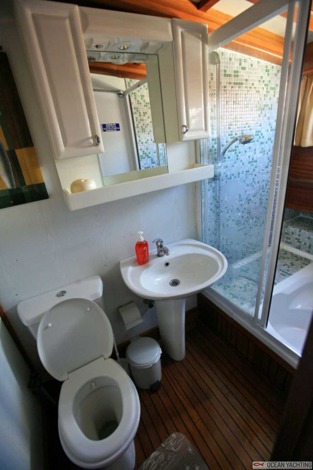 Aria condizionata in ogni cabina e nel salone, TV sat con DVD, Bar/ Ice Maker, tender con fuoribordo, Generatore 220V, Hi-fi,