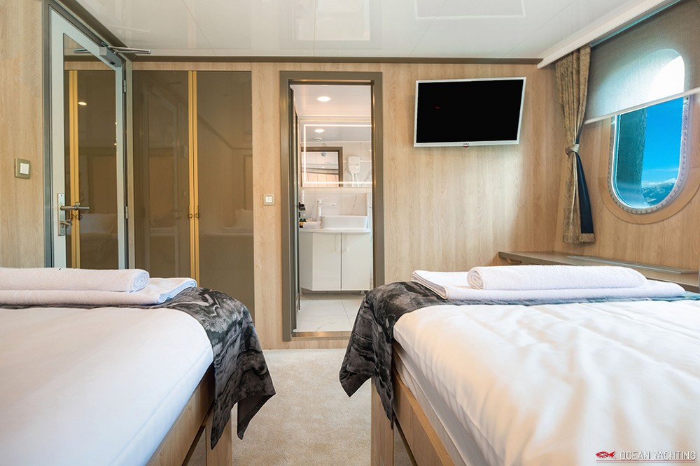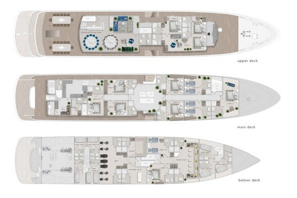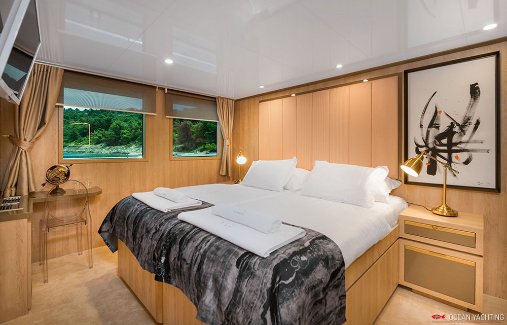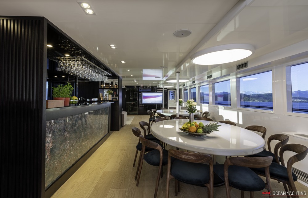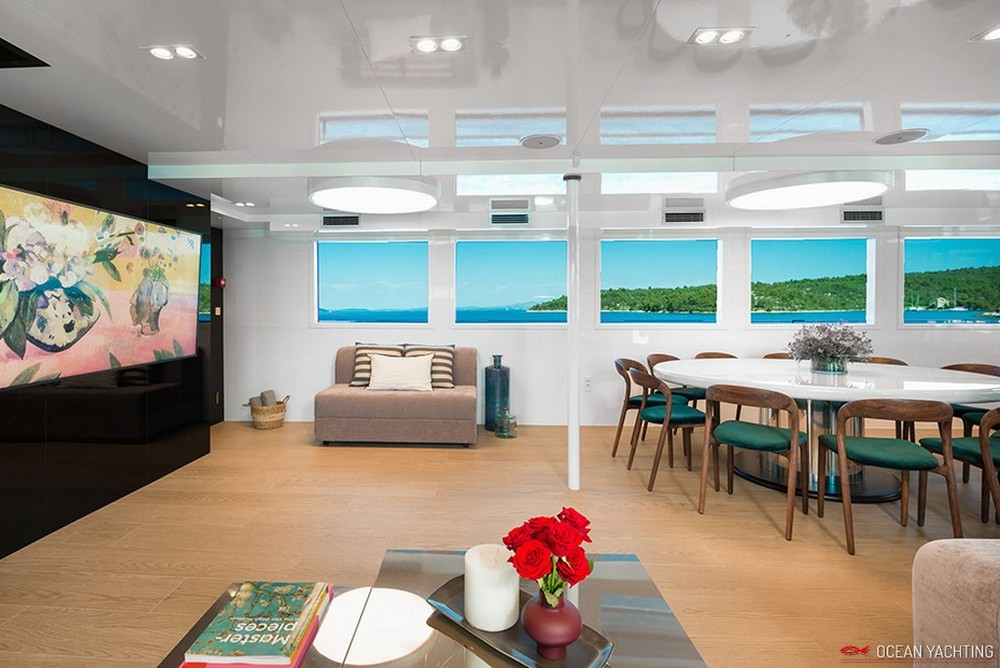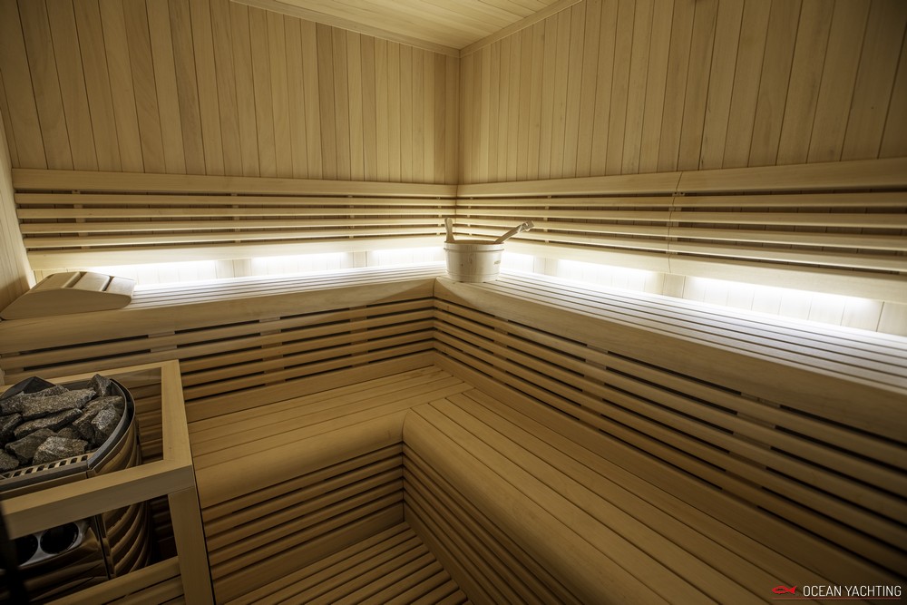 Sauna, Sala massaggi, Idromassaggio in coperta, Sala cinema, Palestra SPA, 2 Moto d'acqua, E-foil elettrico, 4 Stand up paddle, 2 Kayak, Sci nautico, Wakeboard, Ringo, Divano, 2 Tender 6,5 mt con fuoriborodo 150hp,