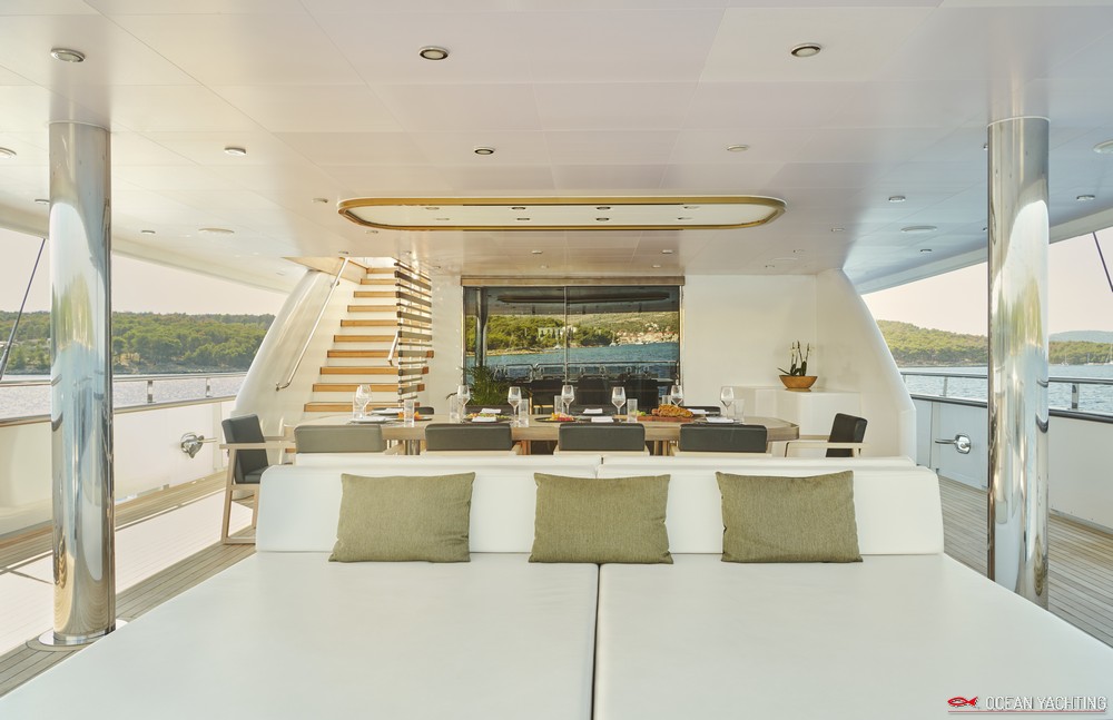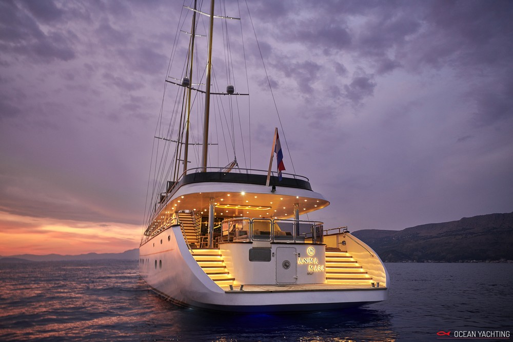 Amina maris è l'ultima nata tra le flotta di caicchi moderni di lusso che naviga in Croazia. Offre tra le cabine più spaziose del mercato (44mq + 38mq + 4 cabine 22mq) e può accogliere fino a 12 ospiti con 8 persone di equipaggio. Lo charme dei legni, supportate da un'illuminazione suadente ne fanno la barca perfetta per una crociera di alto livello. Grande zona cuscini, idromassaggio in coperta e moltissimi giochi d'acqua. Per prenotarla, però, bisogna muoversi con grande anticipo. Prezzo da €69.000/settimana Iva inclusa. La presente scheda non ha finalità contrattuali.