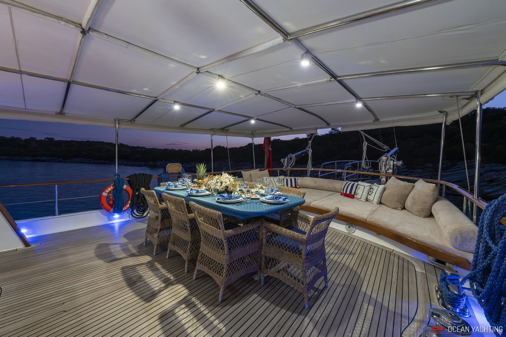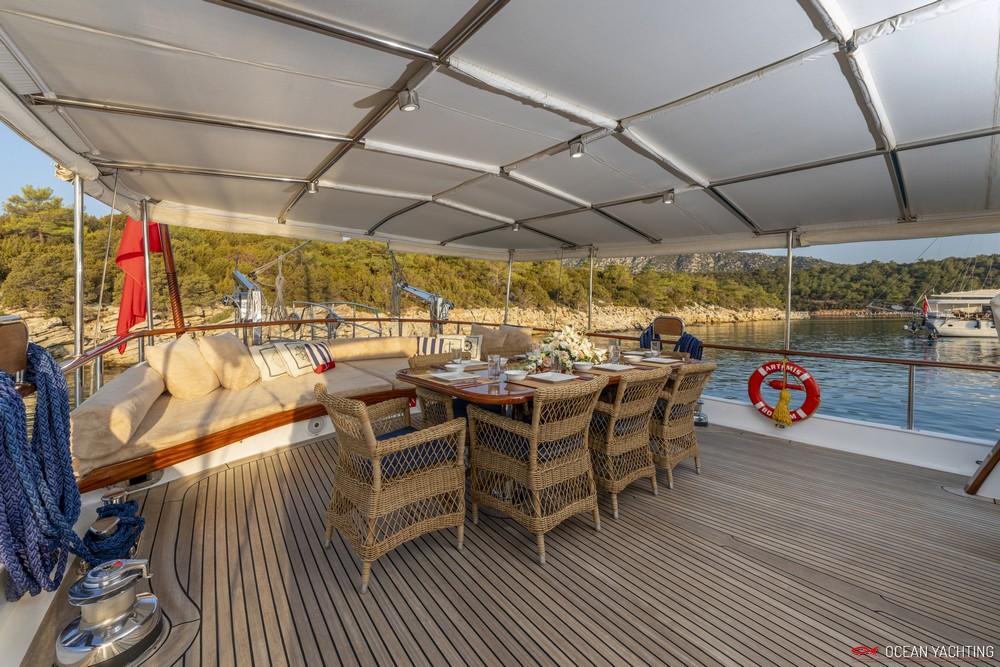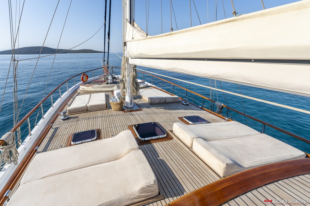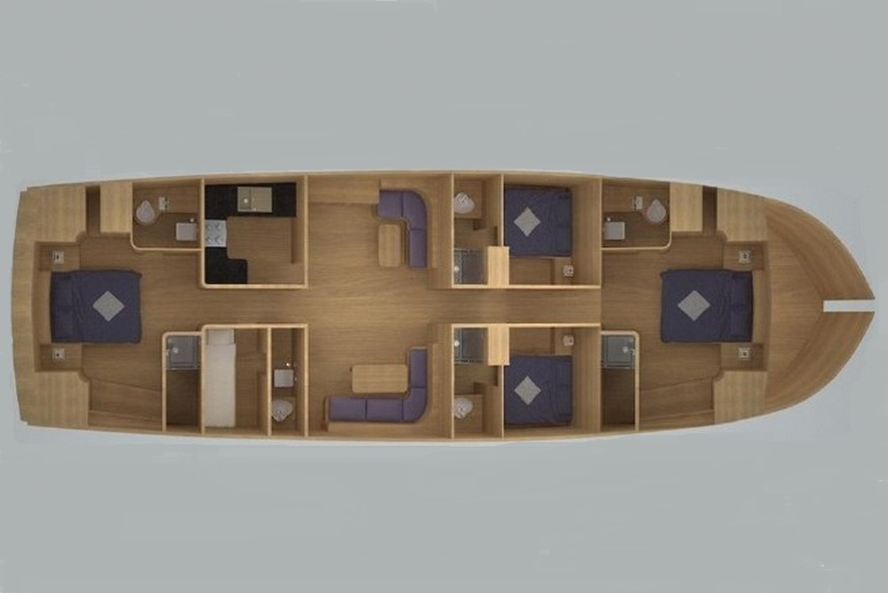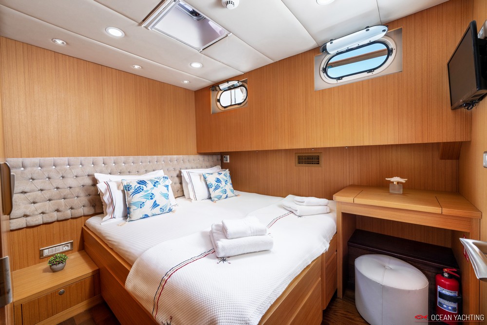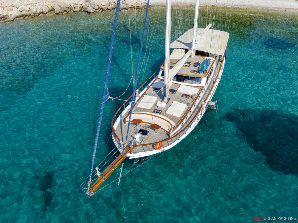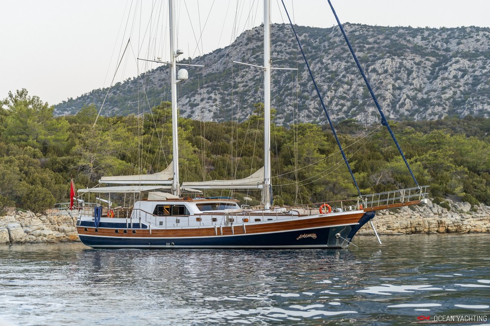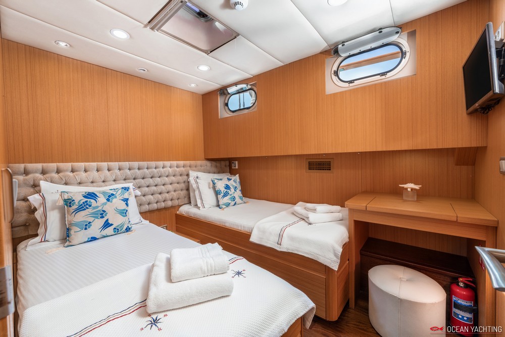 Artemis 1 è un caicco moderno dalle linee pulite. Oltre alle 2 master offre, a mezzanave, 2 cabine doppie che possono facilmente essere trasformate in matrimoniali, aumentando la flessibilità, venendo incontro alle esigenze dei clienti. La presente scheda non ha finalità contrattuali.