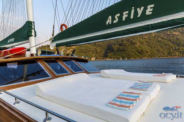Asfiye è un caicco dall’ottimo rapporto qualità offerta/prezzo. Il nuovo armatore ha deciso di inserirlo nel mondo del charter, dopo diversi anni di uso privato. La barca ha subito un refit nel 2015. 4 cabine (1 master e 3 doppie) fino a 8 ospiti. Per la stagione 2016 sarà in Grecia Ionica. La presente scheda non ha finalità contrattuali.