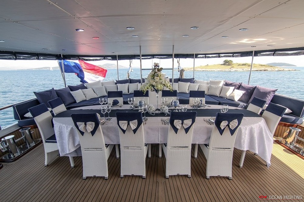 Aurum è un ottimo caicco che naviga in Croazia. Può accogliere fino a 12 ospiti in 6 cabine matrimoniali. 4 persone di equipaggio e un comodo flybridge. Sicuramente è la migliore opzione per la sua fascia di prezzo. La presente scheda non ha finalità contrattuali.
