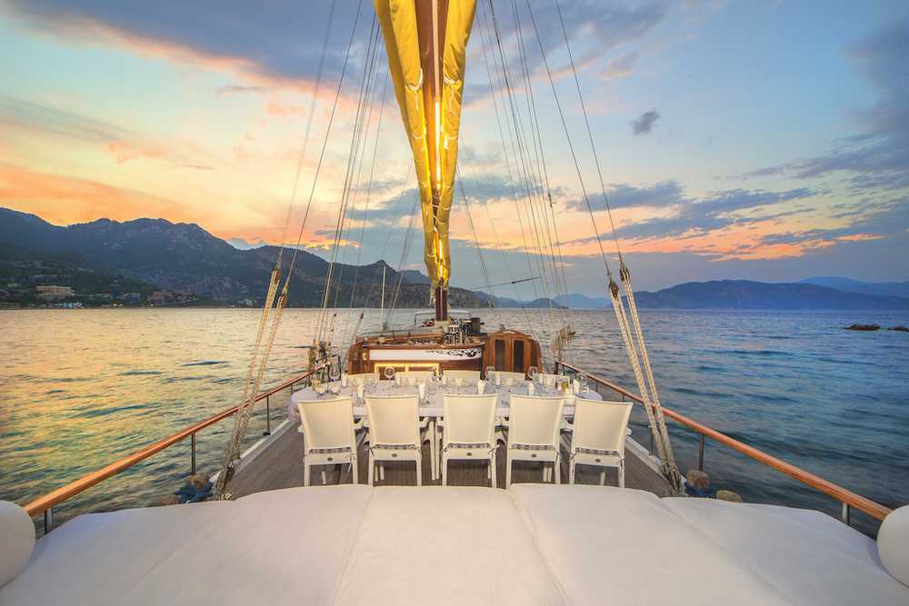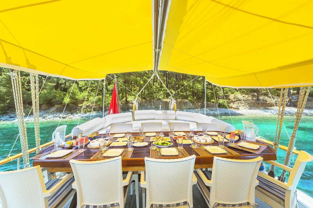 Ayla Sultan è un ottimo connubio tra qualità die servizio e costo del noleggio. Può accogliere fino a 12 ospiti in 6 cabine matrimoniali con servizi privati. 3 persona di equipaggio. La presente scheda non ha finalità contrattuali.