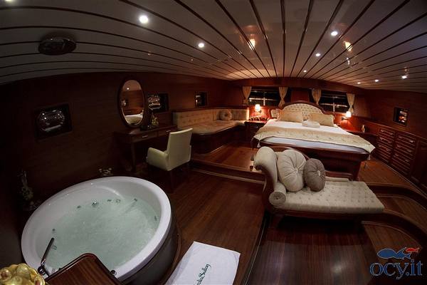 Bedia Sultan è un caicco di lusso che naviga tra Turchia e Dodecanneso. 35 metri, può accogliere fino a 10 ospiti in 5 cabine (2 master molto grandi di cui 1 con jacuzzi a vista e 3 matrimoniali). Adatta a 5 coppie per la mancanza di cabine doppie con letti separati. Servizio di altissimo livello. La presente scheda non ha finalità contrattuali.