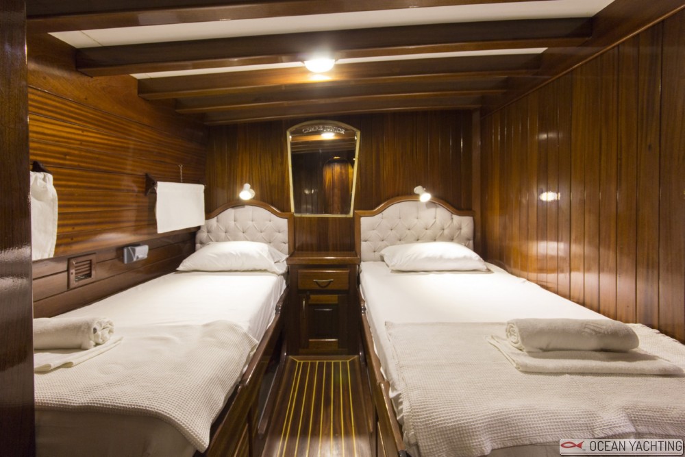 Cemre Junior è un caicco che naviga in Turchia. Offre 6 cabine (2 master e 4 matrimoniali con terzo letto) tutte con servizi privati. Ha subito l’ultimo refit nel 2019. 4 persone di equipaggio. La presente scheda non ha finalità contrattuali.